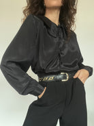 Vintage 90’s Black Textured Ruffled Collar Shirt