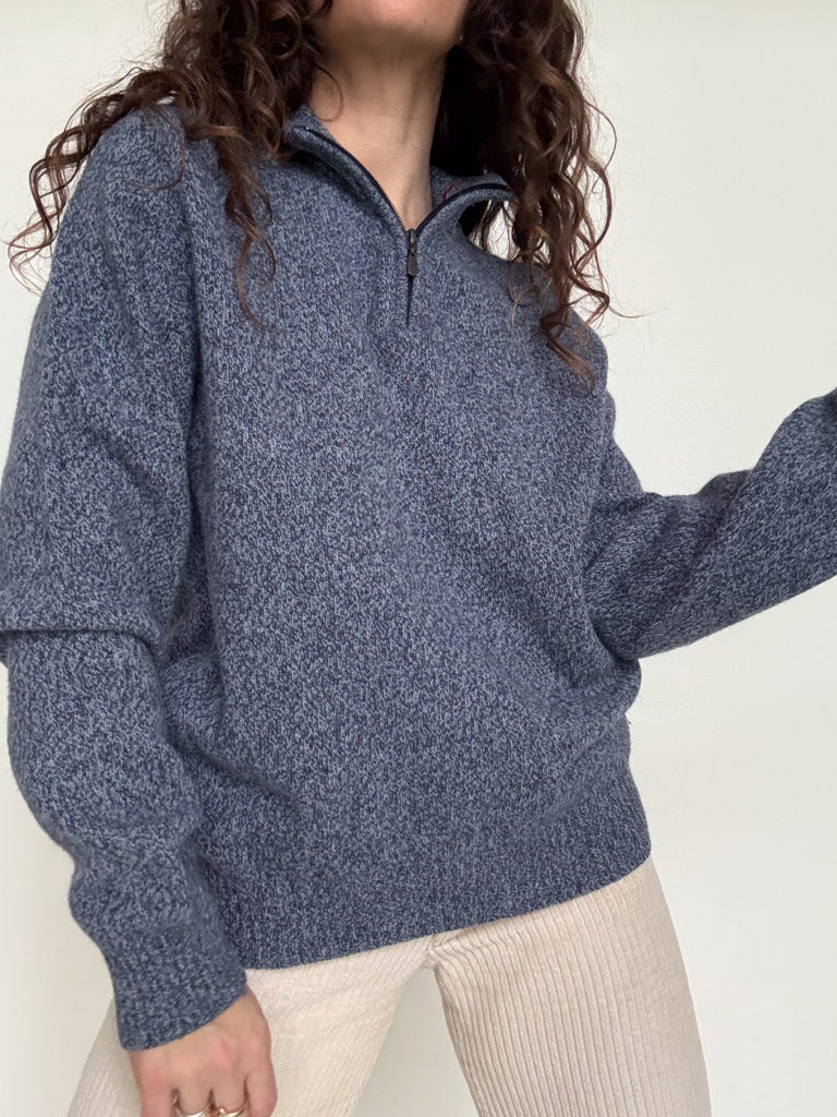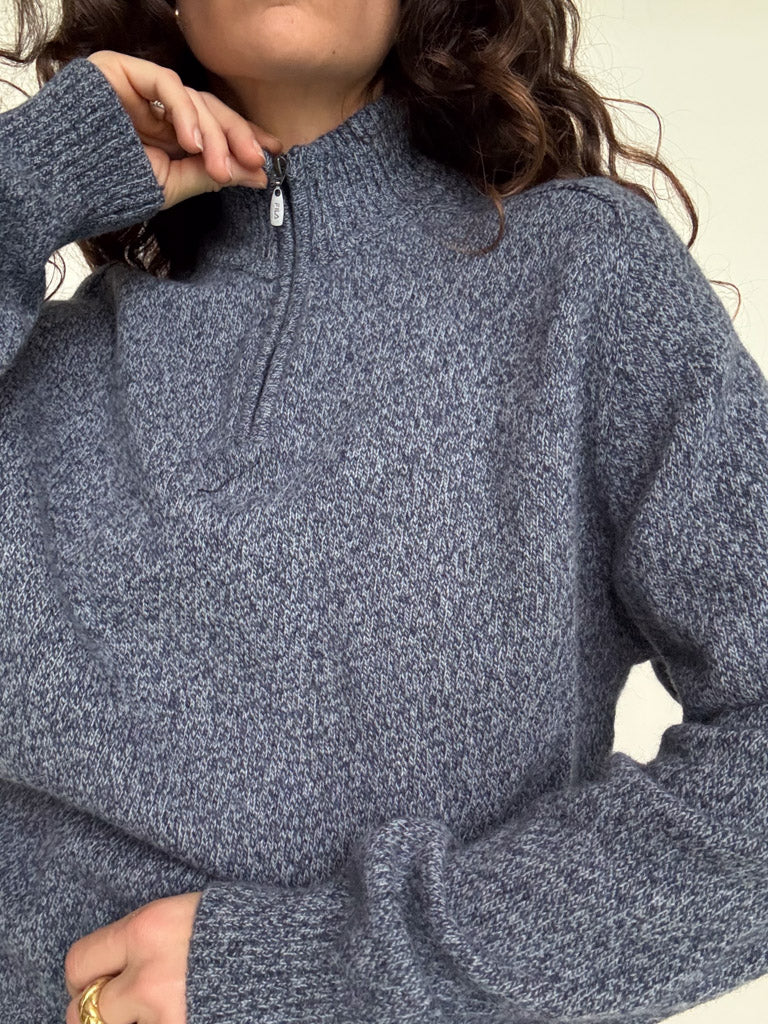 Vintage 90’s Blue Grey Zip Wool Pullover
