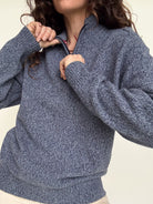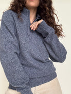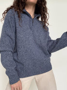 Chosen for its beautiful blue grey mélange tone and relaxed silhouette, this Marquefila piece captures effortless 90’s comfort. The subtle speckled knit gives depth to the color, while the half zip neckline adds a sporty yet refined touch. Easy to wear and layer, it is a timeless everyday pullover with understated character.