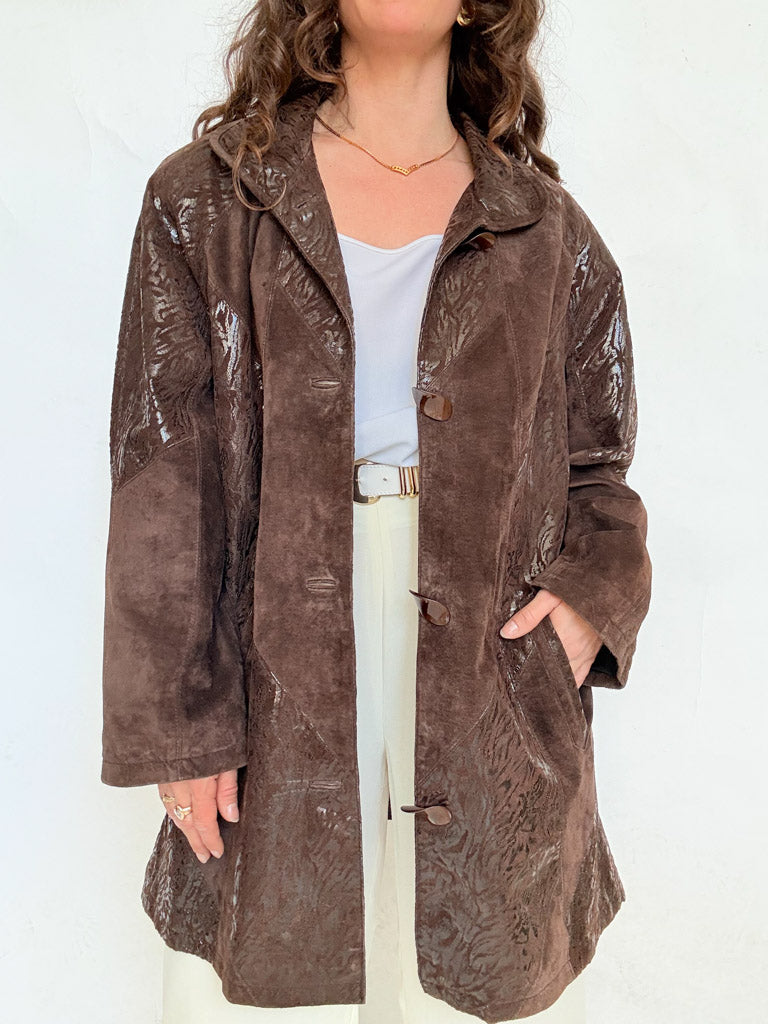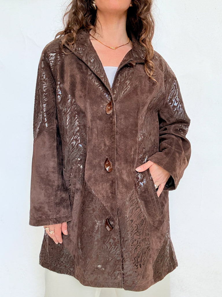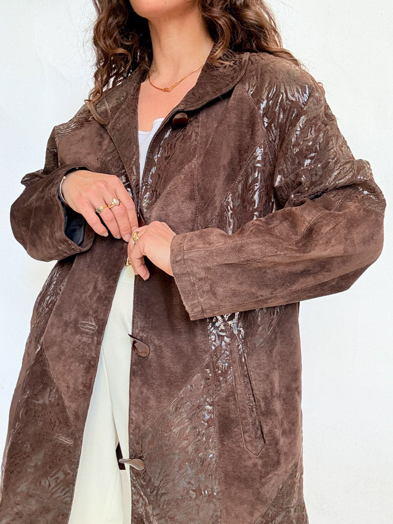 Vintage 90’s Brown Textured Suede Coat