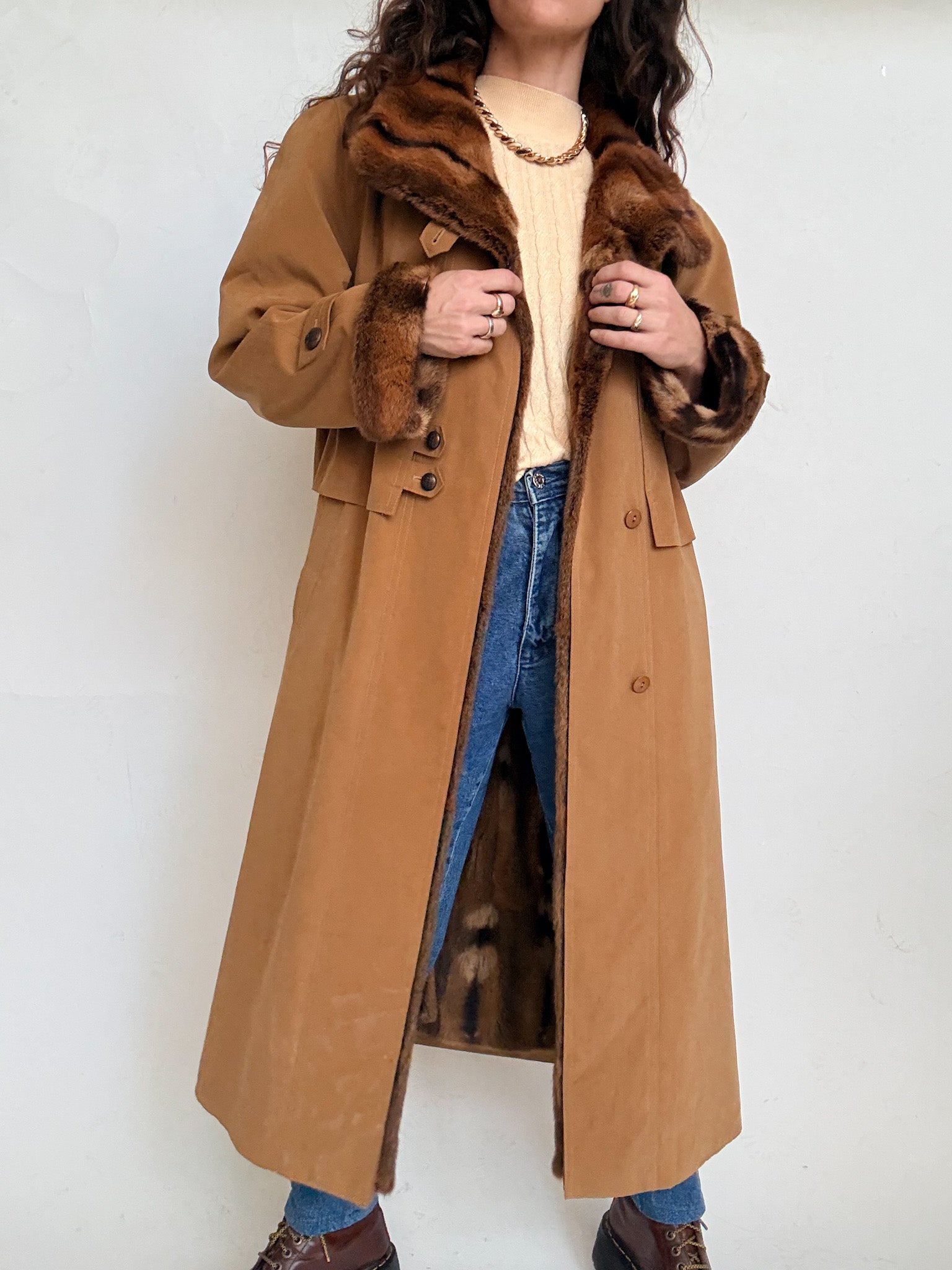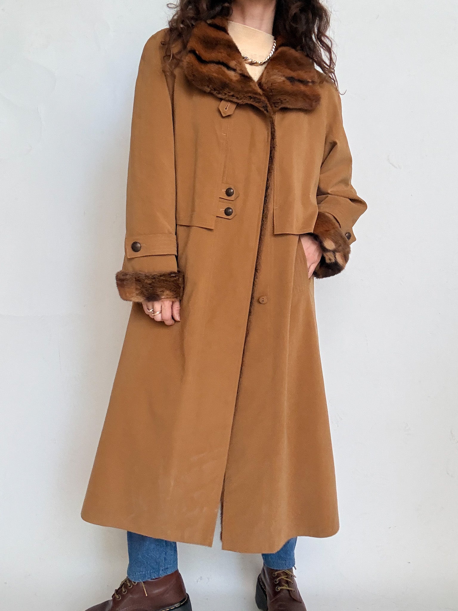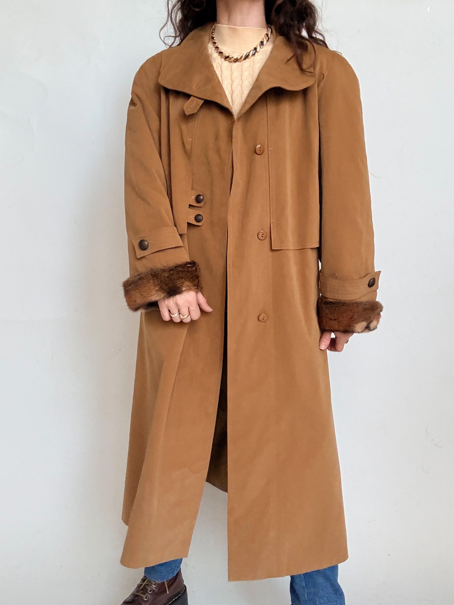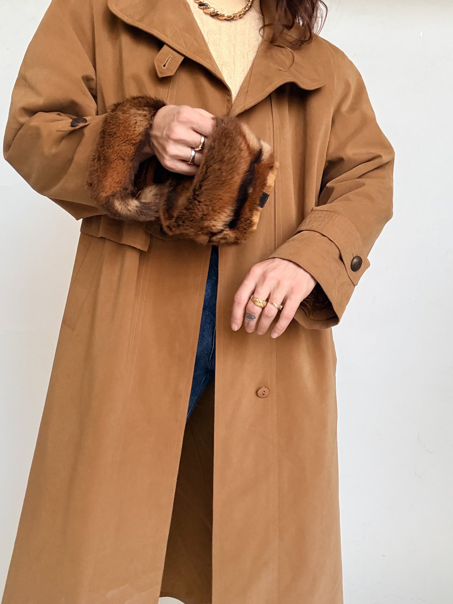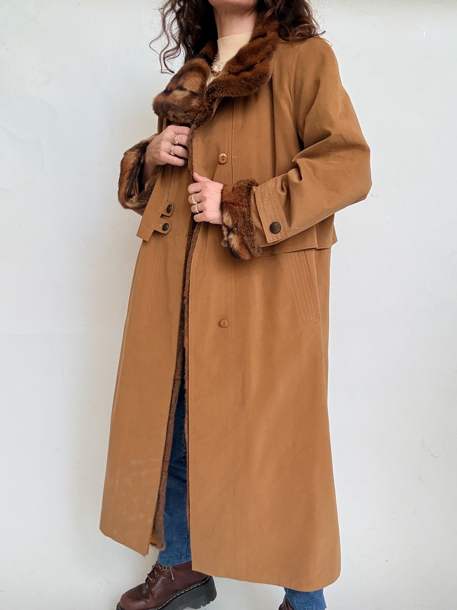 Chosen for its versatility and its beautifully balanced silhouette, this coat adapts effortlessly to different seasons and moods. Worn with its real fur lining, it becomes a strong winter piece with presence and warmth. Without the fur, it transforms into a lighter coat perfect for spring or autumn, while keeping its elegant structure. Selected for its refined cut, its adaptability and its timeless appeal.