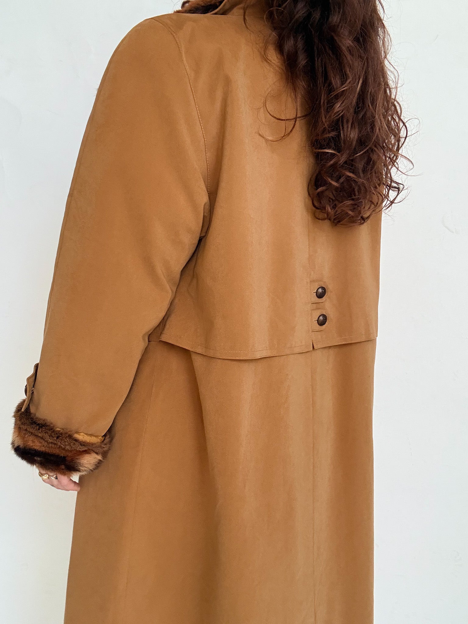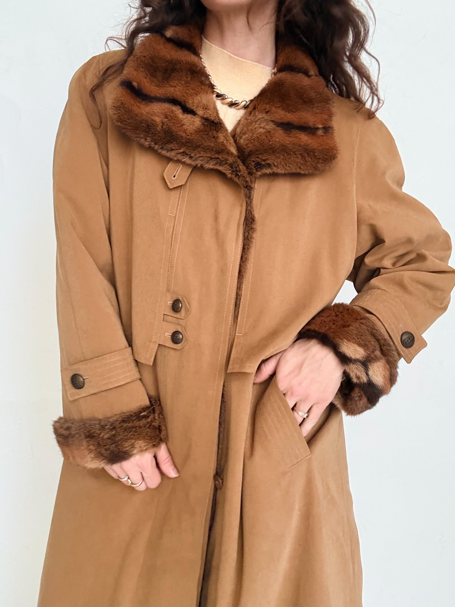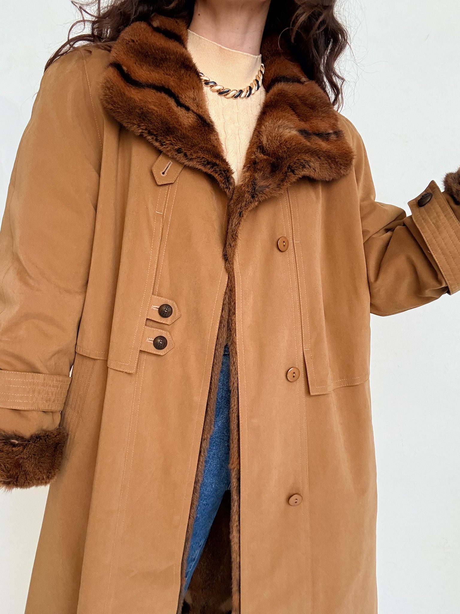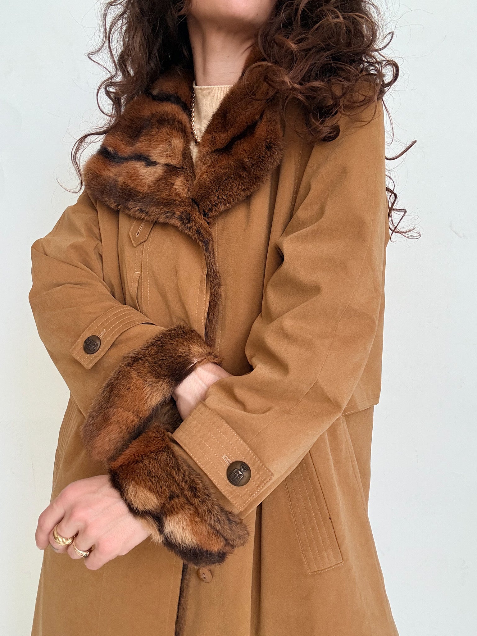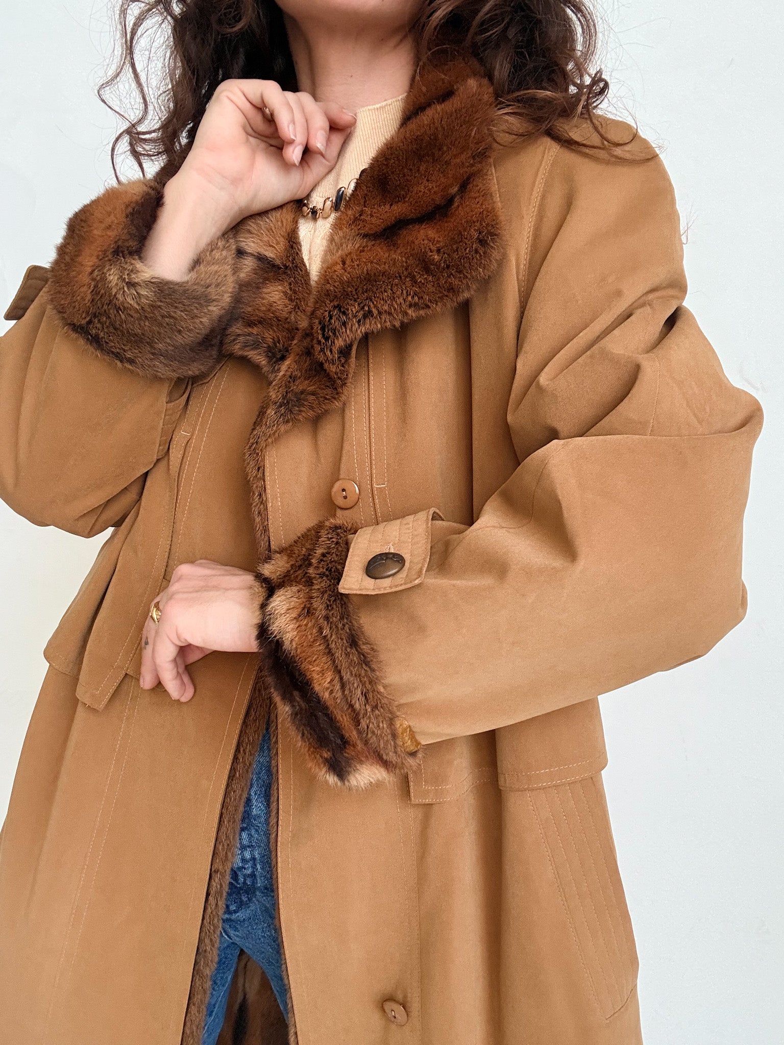 Chosen for its versatility and its beautifully balanced silhouette, this coat adapts effortlessly to different seasons and moods. Worn with its real fur lining, it becomes a strong winter piece with presence and warmth. Without the fur, it transforms into a lighter coat perfect for spring or autumn, while keeping its elegant structure. Selected for its refined cut, its adaptability and its timeless appeal.