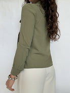 Chosen for its structured yet effortless silhouette, this piece stands out through its subtle pleated front and perfectly balanced pocket details. The soft khaki tone adds a natural, understated elegance, making it an easy statement piece that elevates everyday looks with quiet confidence.
