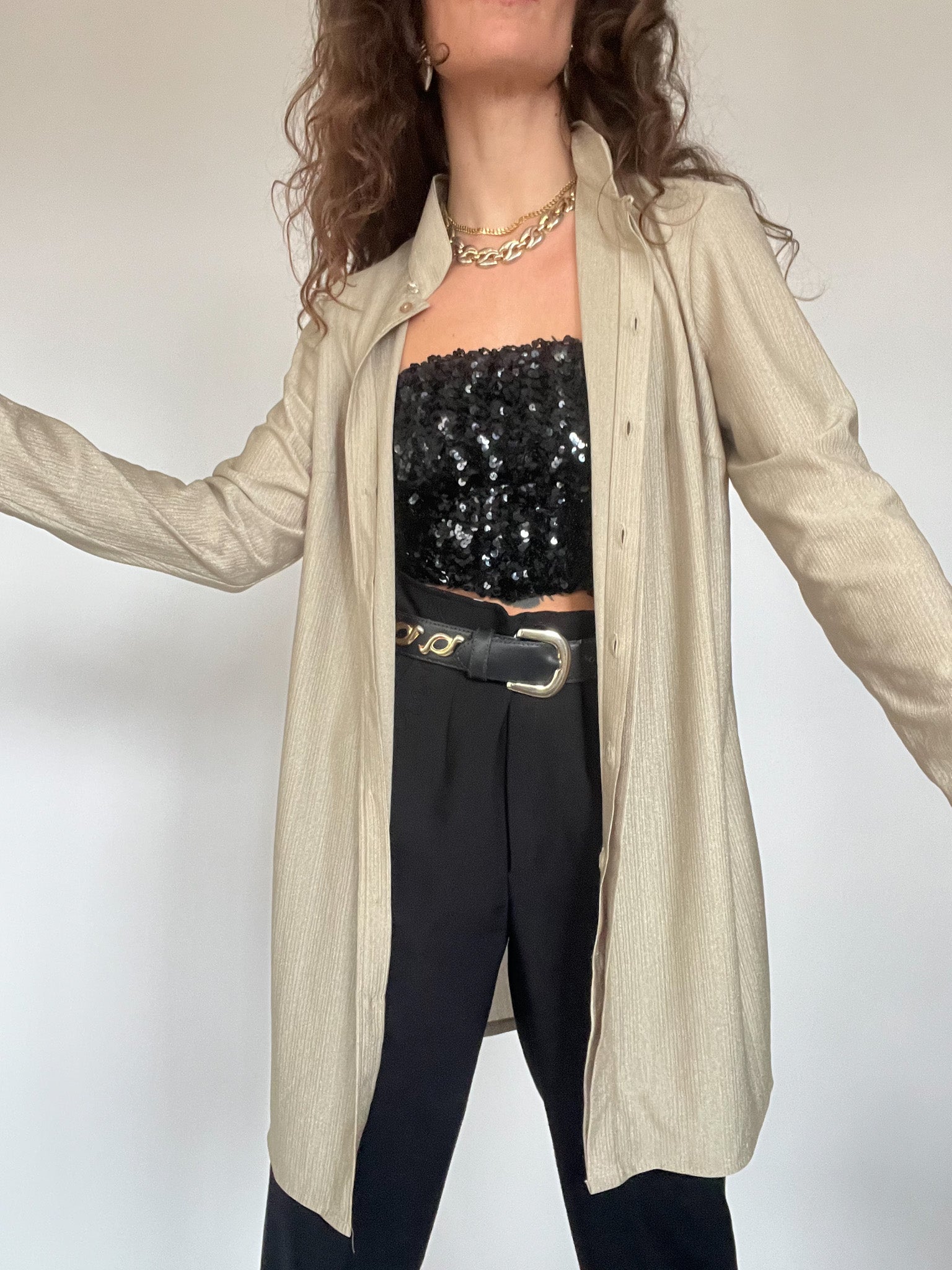 Vintage 90’s Long Beige Evening Jacket Shirt