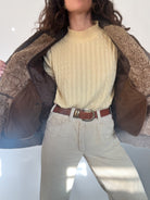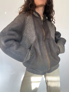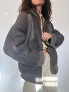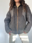 A rare 90’s hybrid design, the kind of statement winter piece that instantly sets your look apart. This jacket blends deep charcoal fabric with textured wool panels and a full shearling lining, creating a sculptural, archive-worthy silhouette that feels powerful, warm, and unmistakably unique. Its oversized volume, ribbed knit cuffs and hem, and high zipped collar echo the bold outerwear codes of the era — functional, iconic, and crafted to last. This is exactly the type of piece chosen for the Skorpiones Vintage selection: strong lines, and a design that empowers you the moment you slip it on. A winter essential with character, presence, and that signature 90’s attitude.