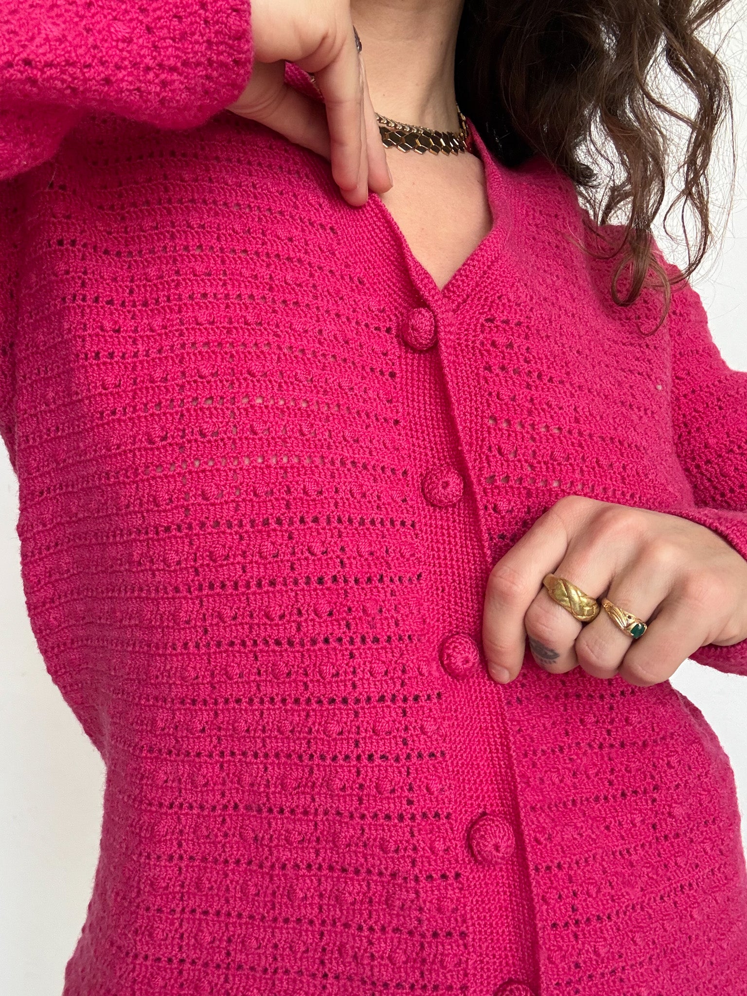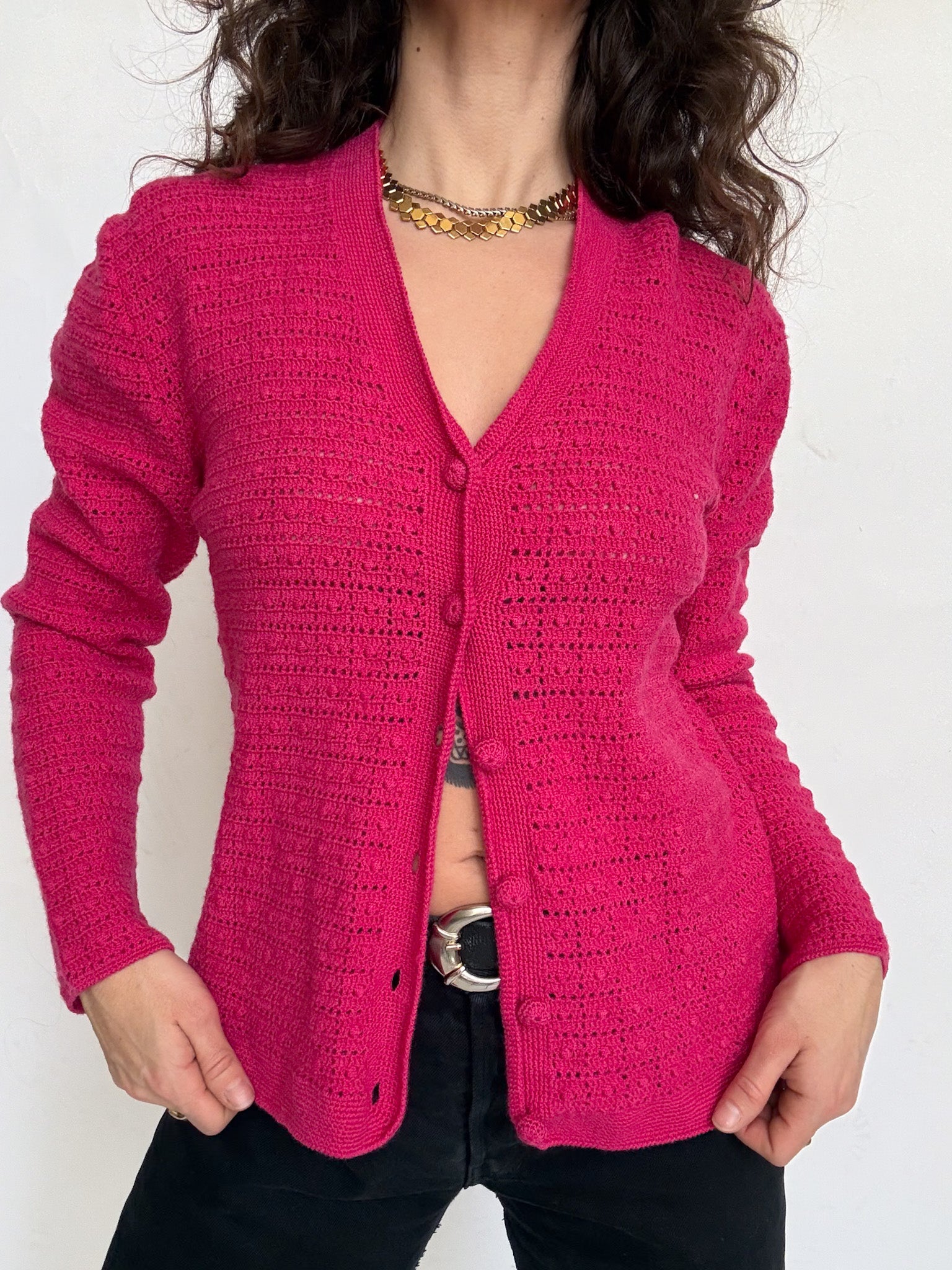 Vintage Fuschia Handcrafted Knit Cardigan