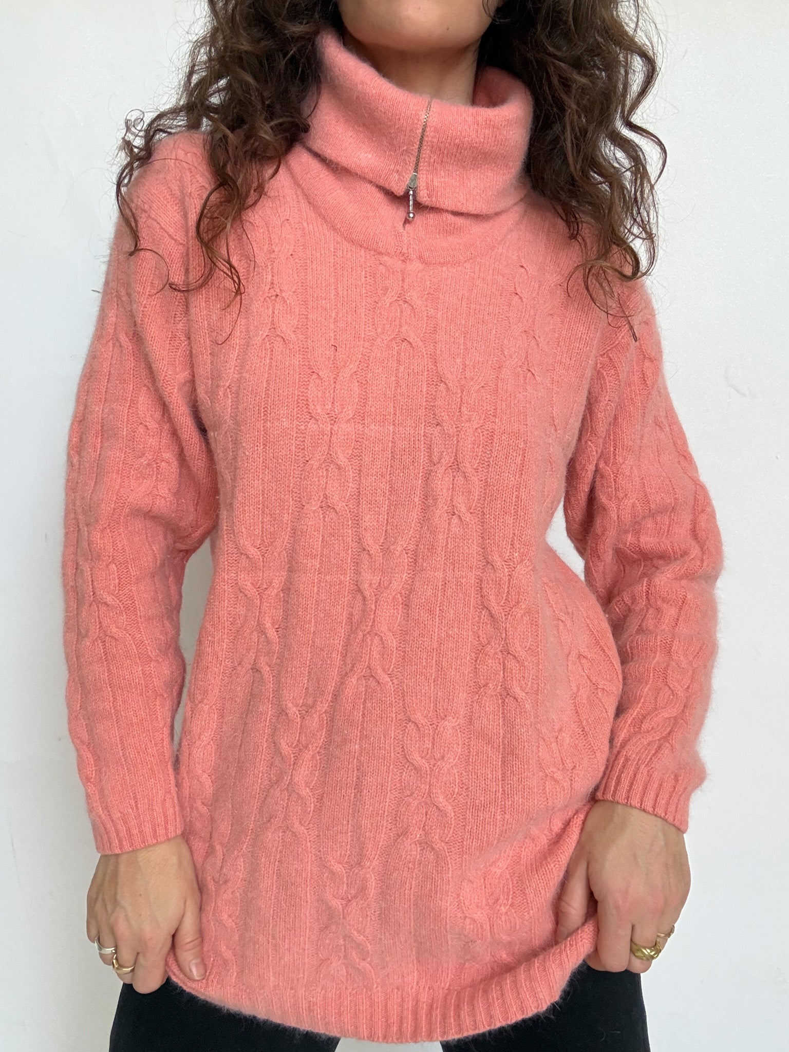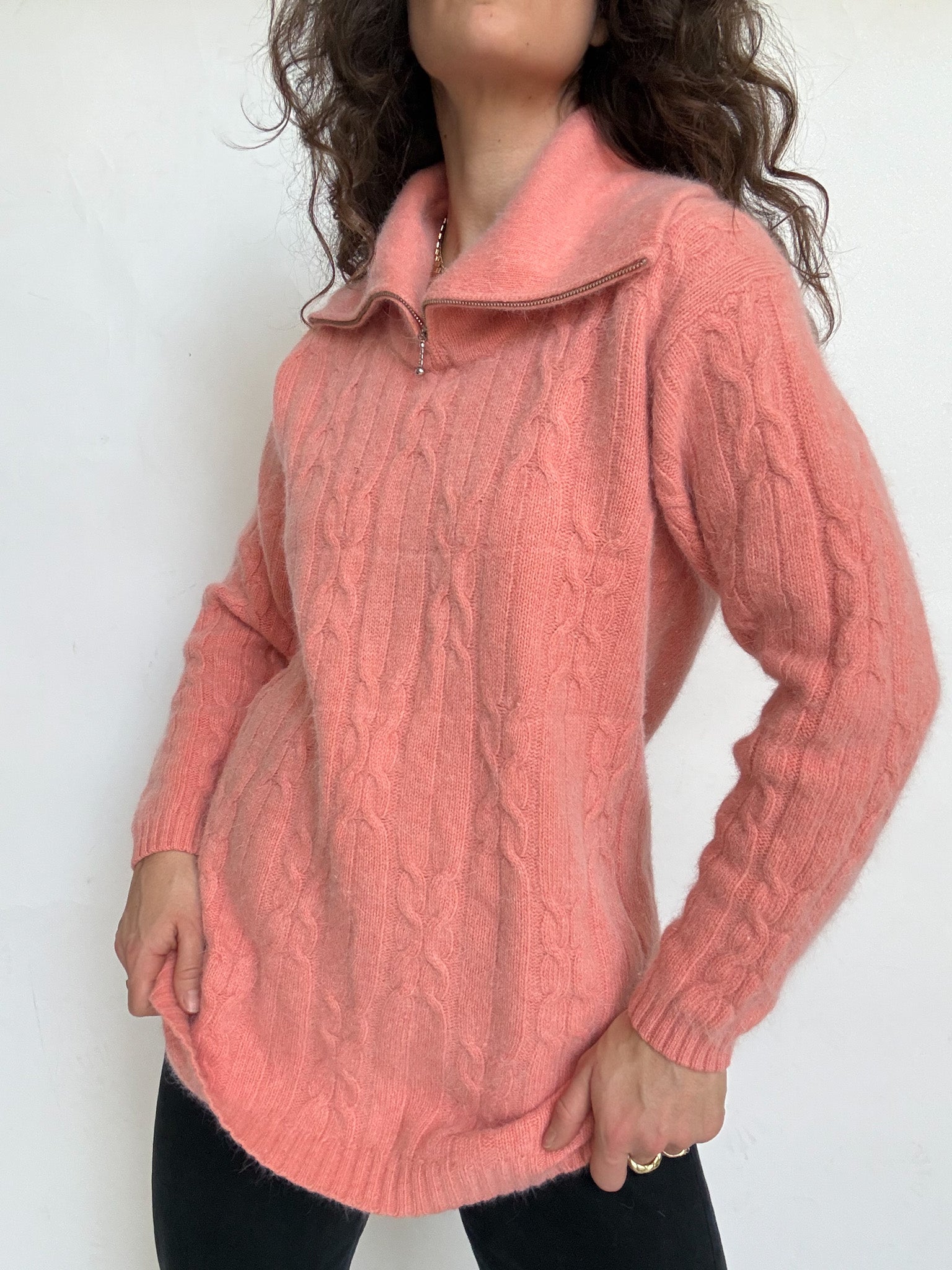 Vintage 90’s Salmon Zip Collar Wool Knit Pullover