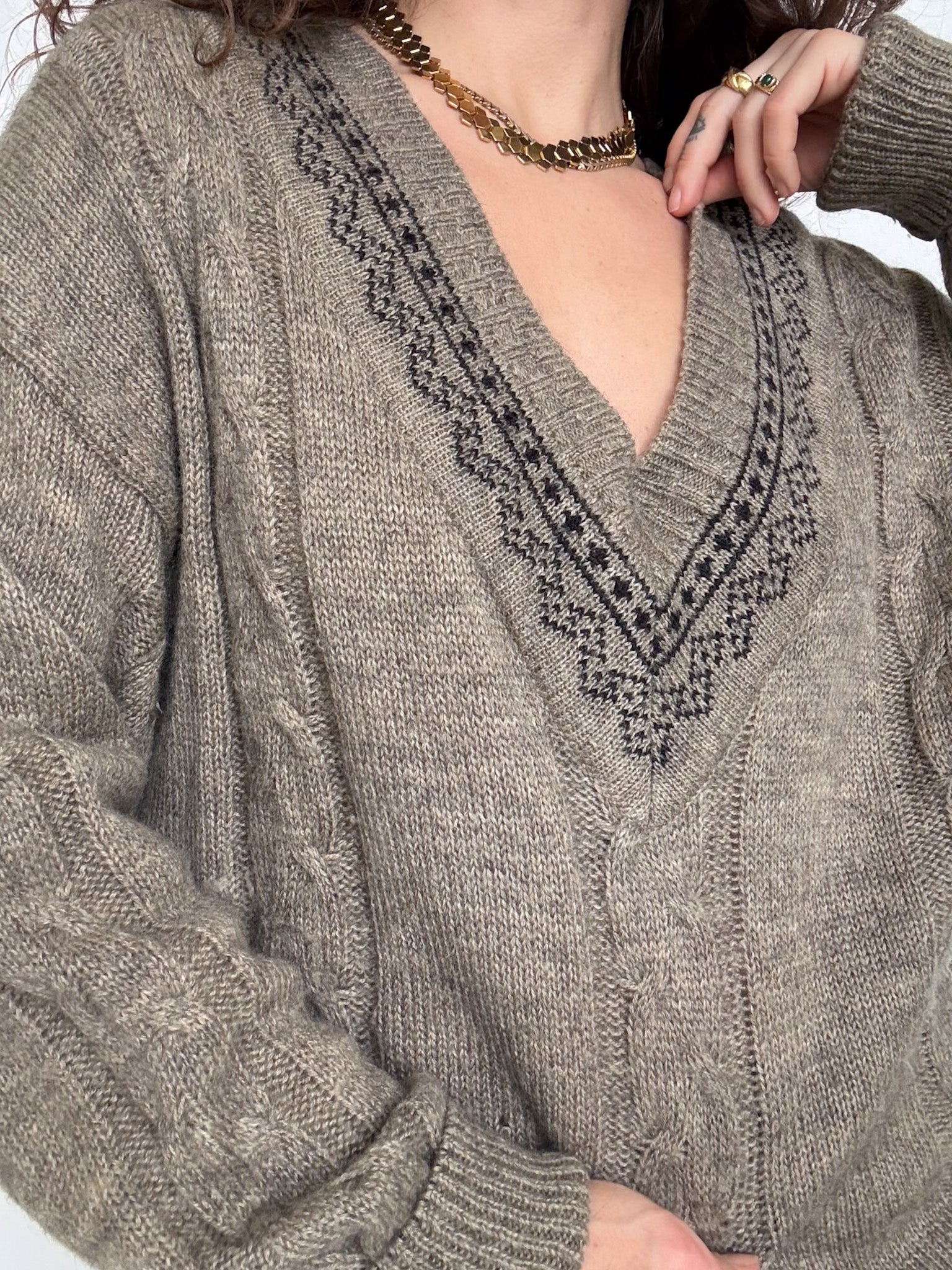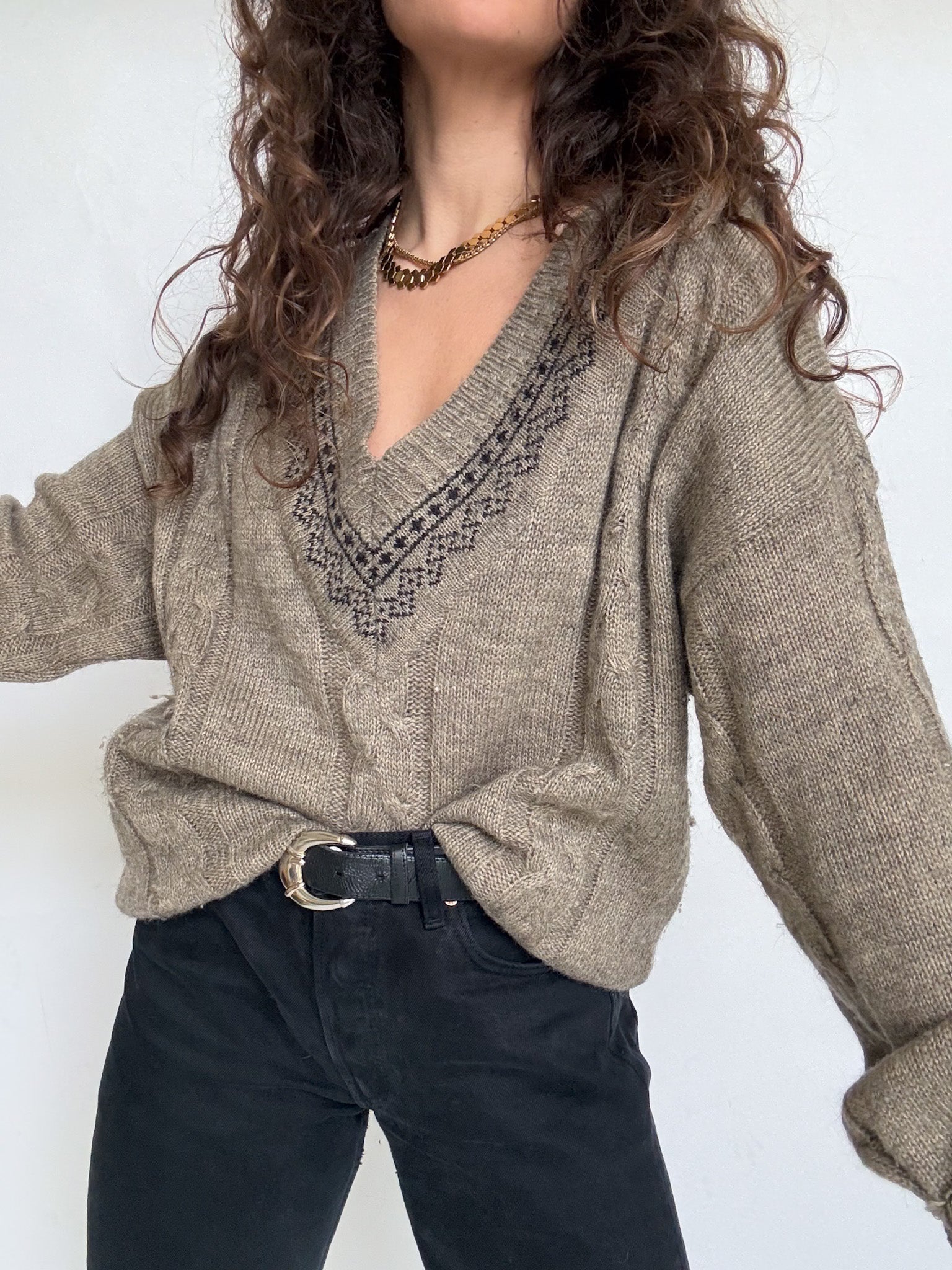 Vintage 90’s Green Cable Knit V-Neck Pullover