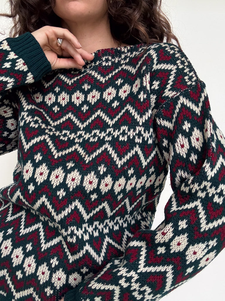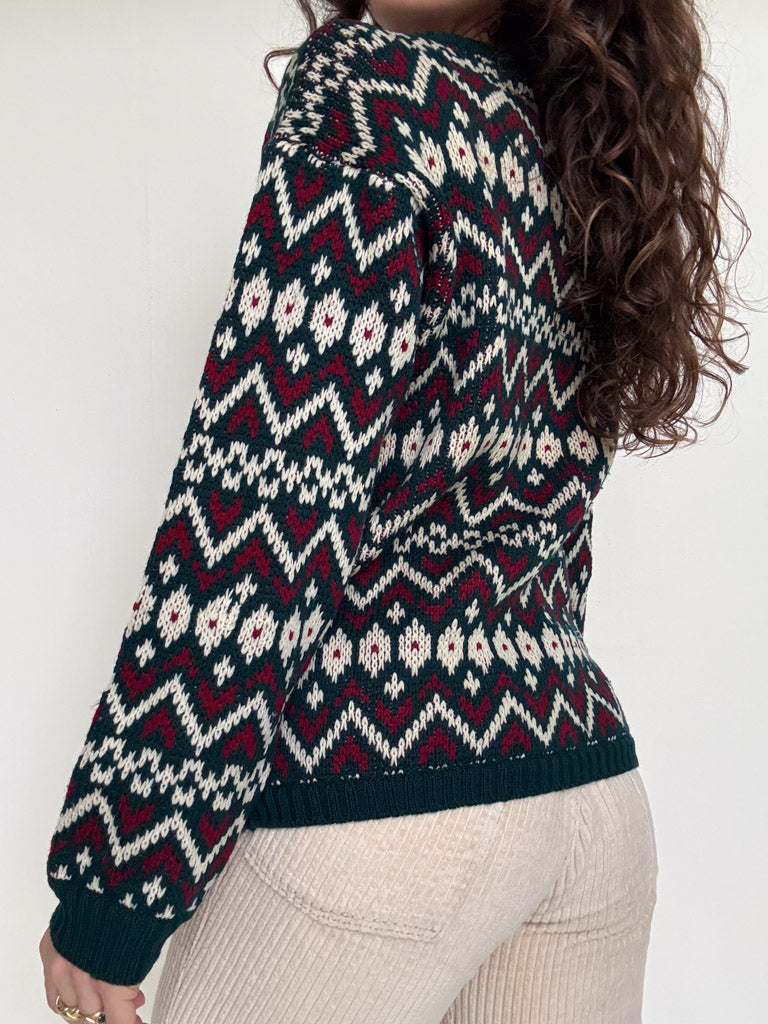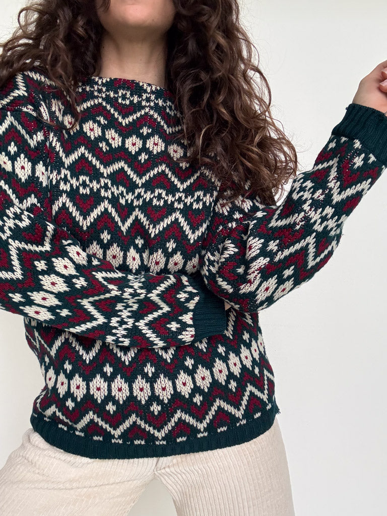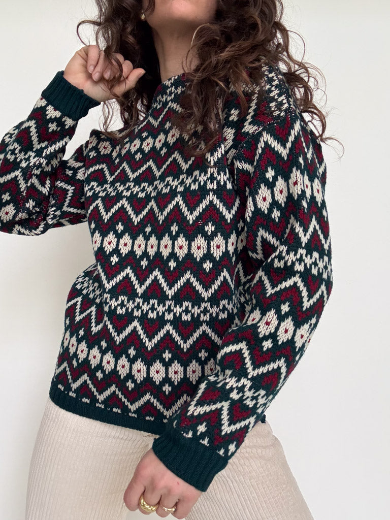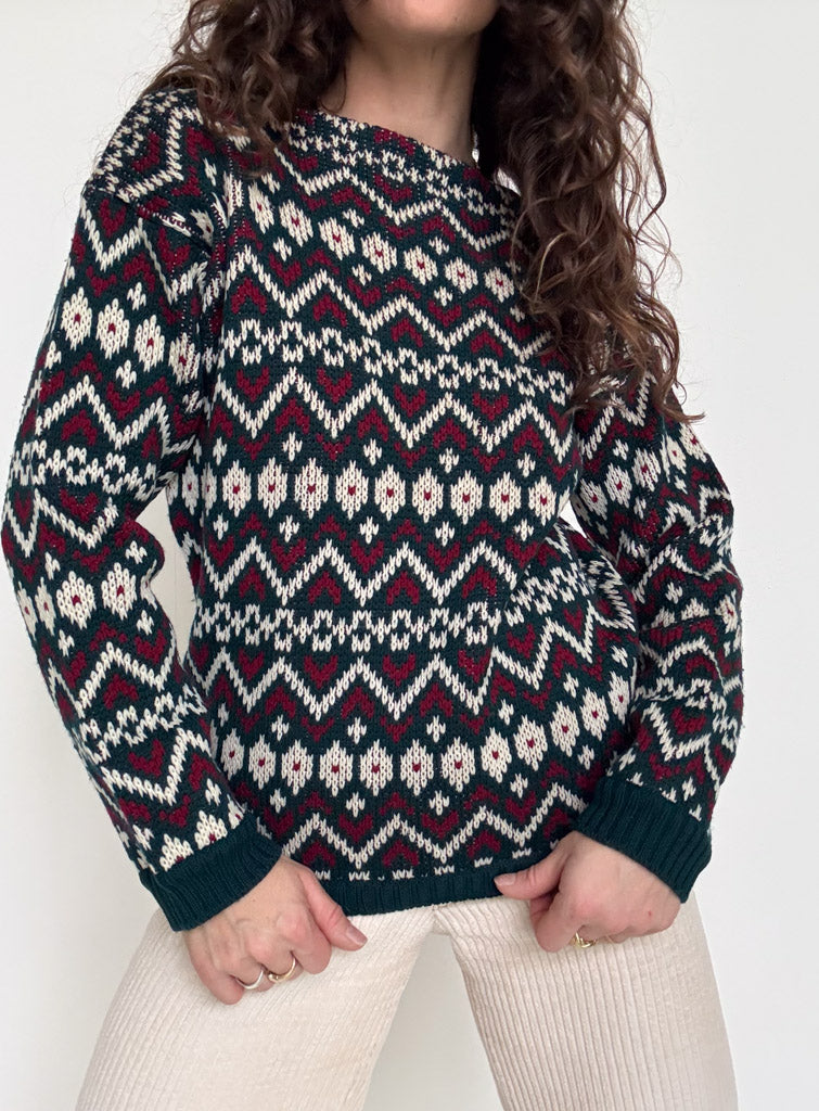 Vintage 90’s Green & Burgundy Nordic Wool Pullover