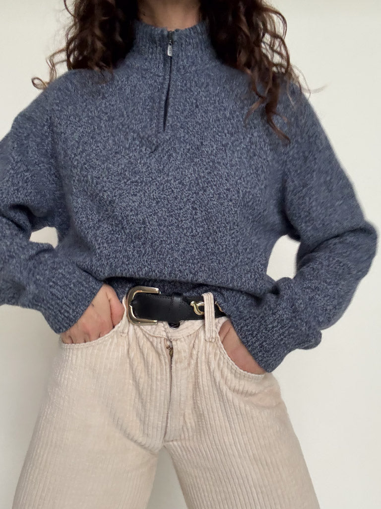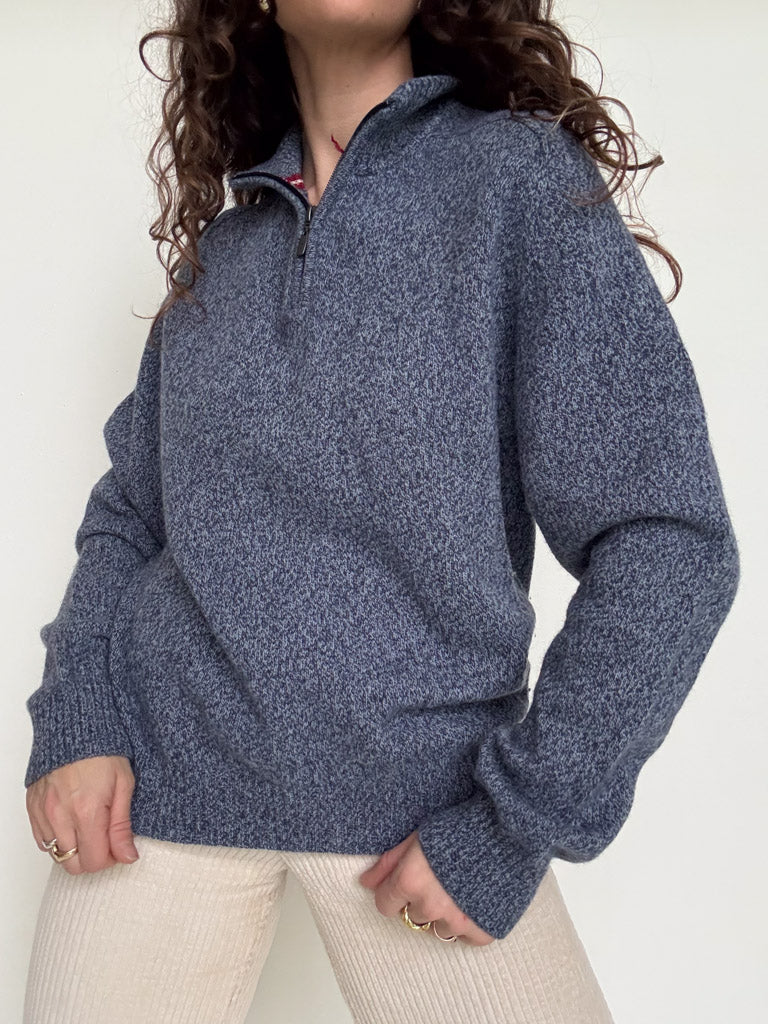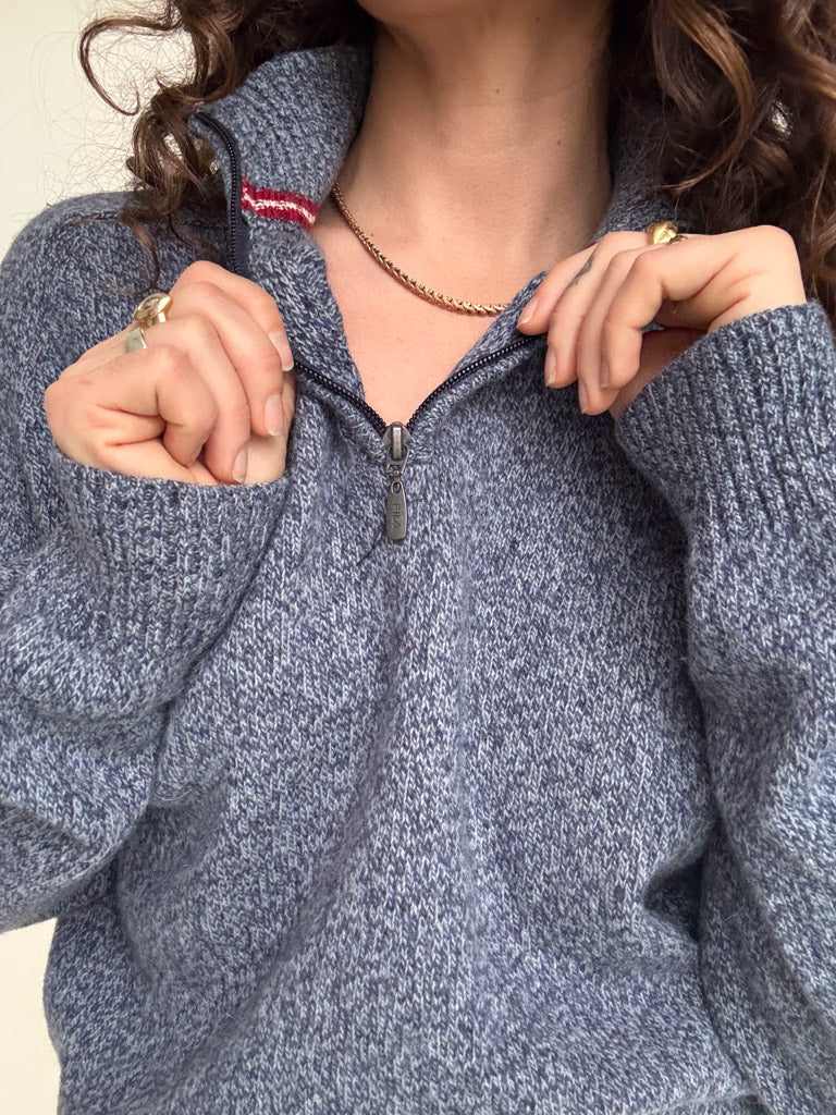 Vintage 90’s Blue Grey Zip Wool Pullover