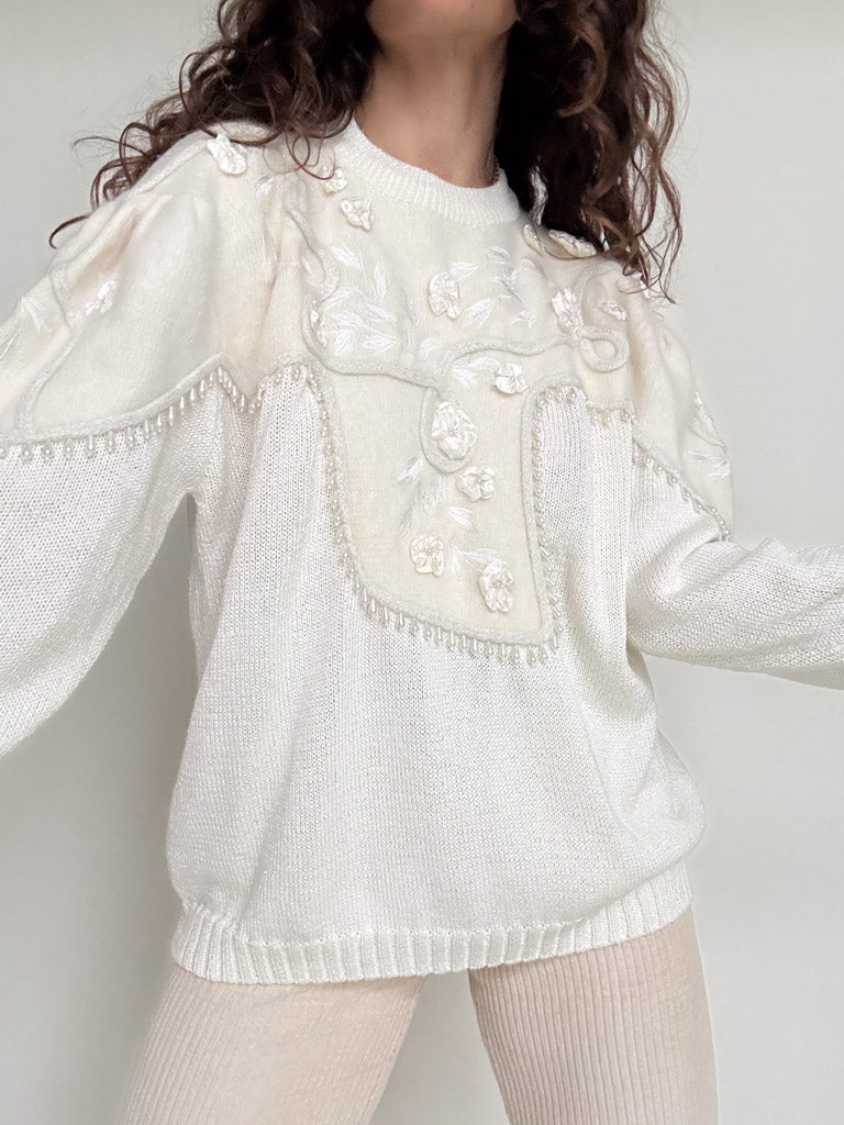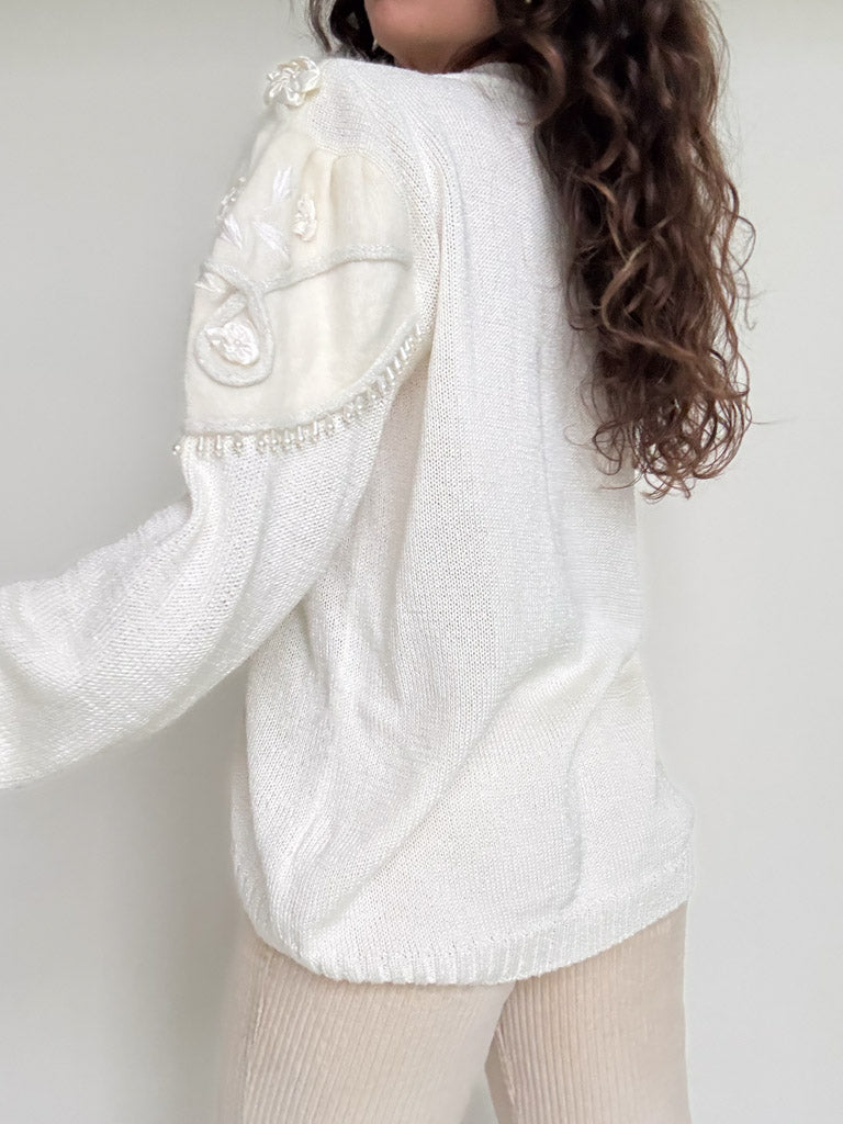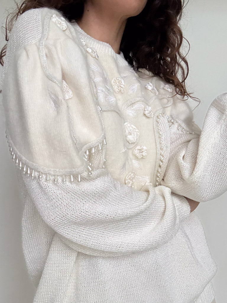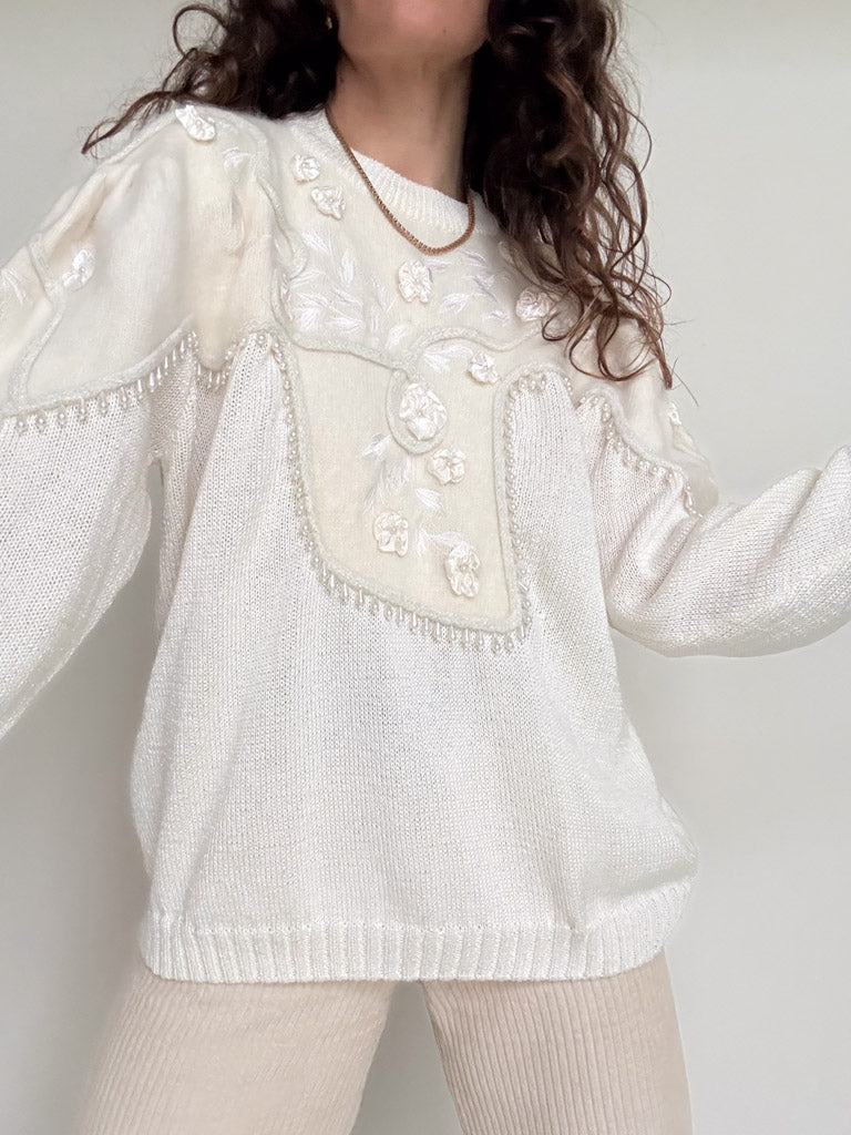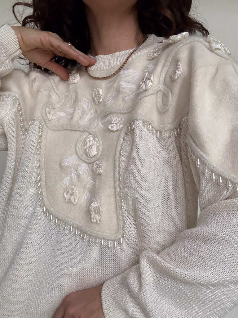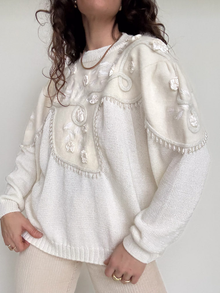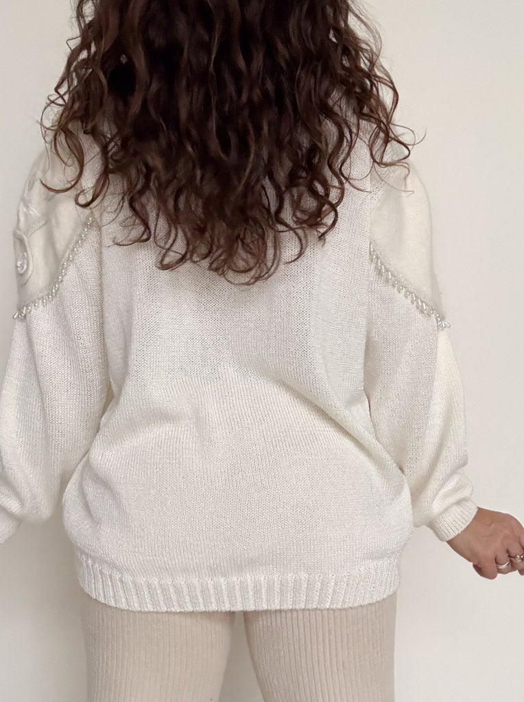 Vintage 90’s Cream Virgin Wool V-Neck Pullover