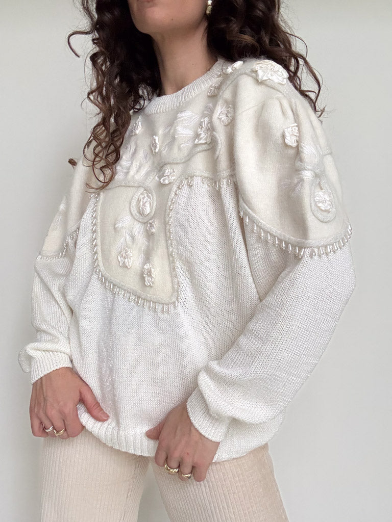 Vintage 90’s Beige Cable Knit Shawl Collar Pullover