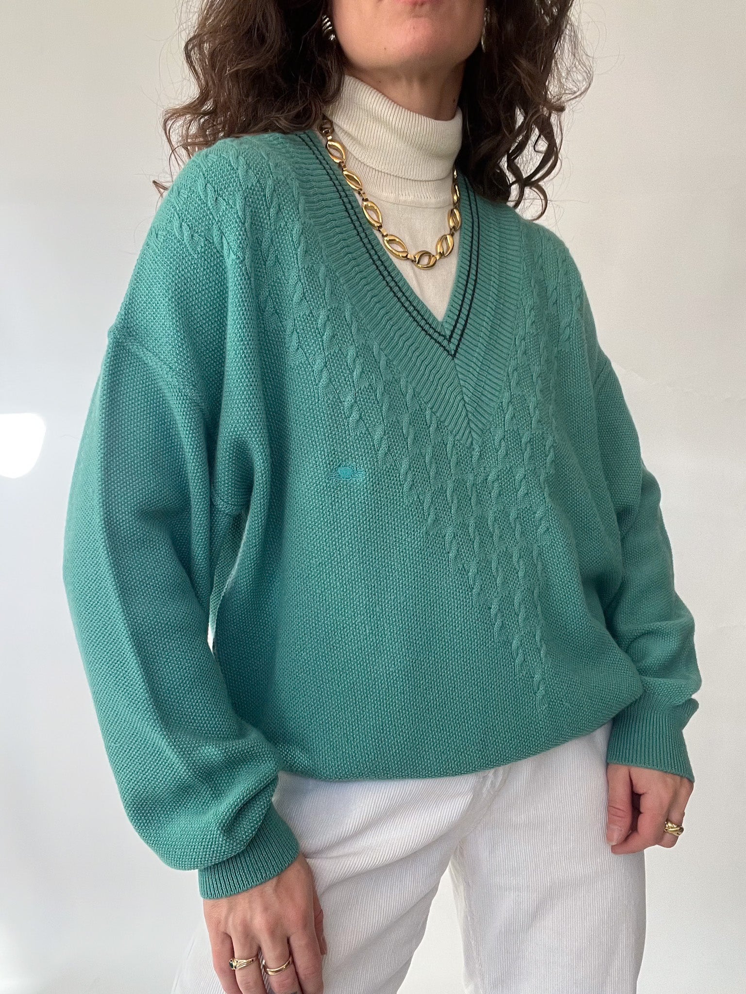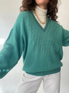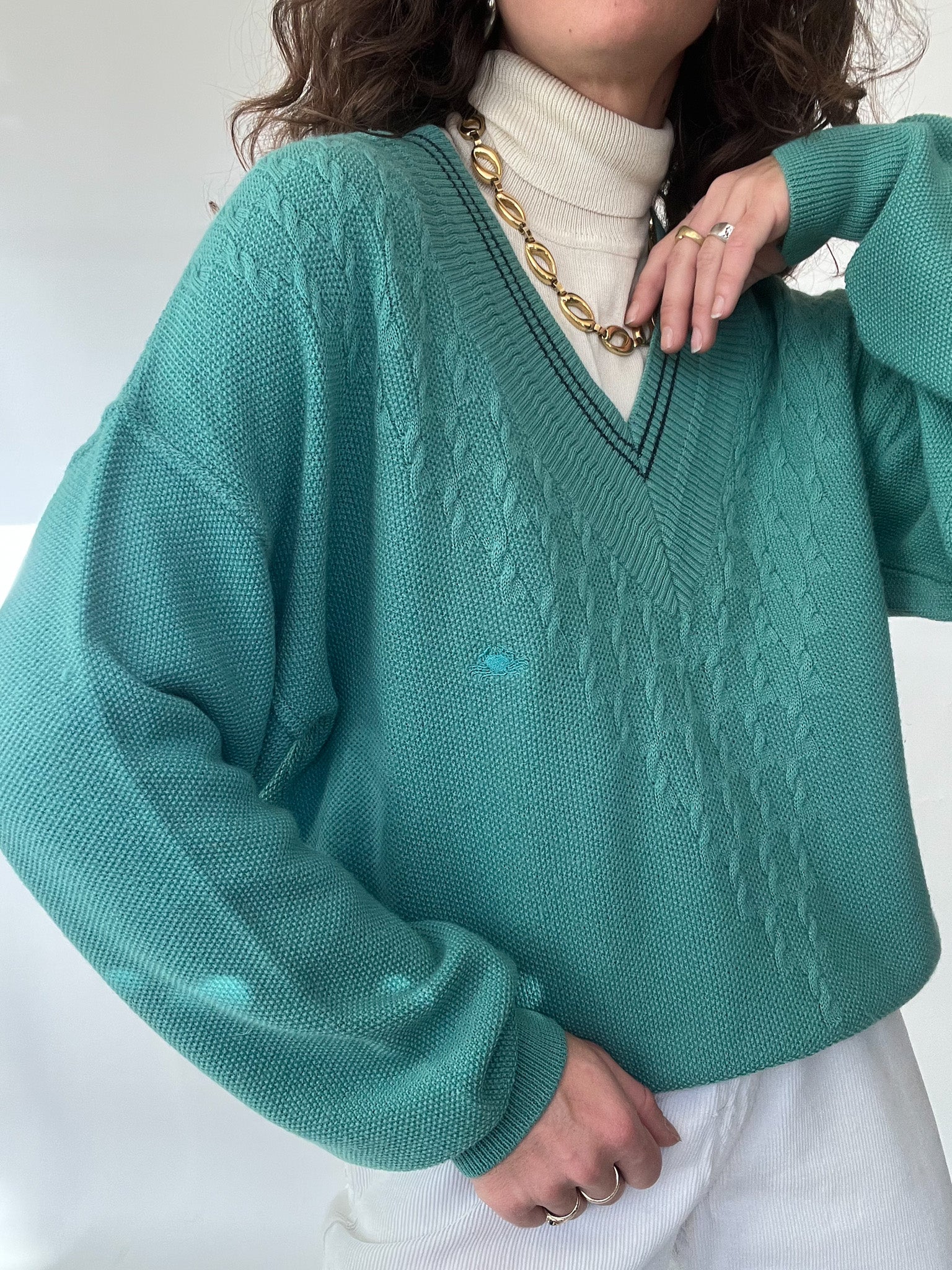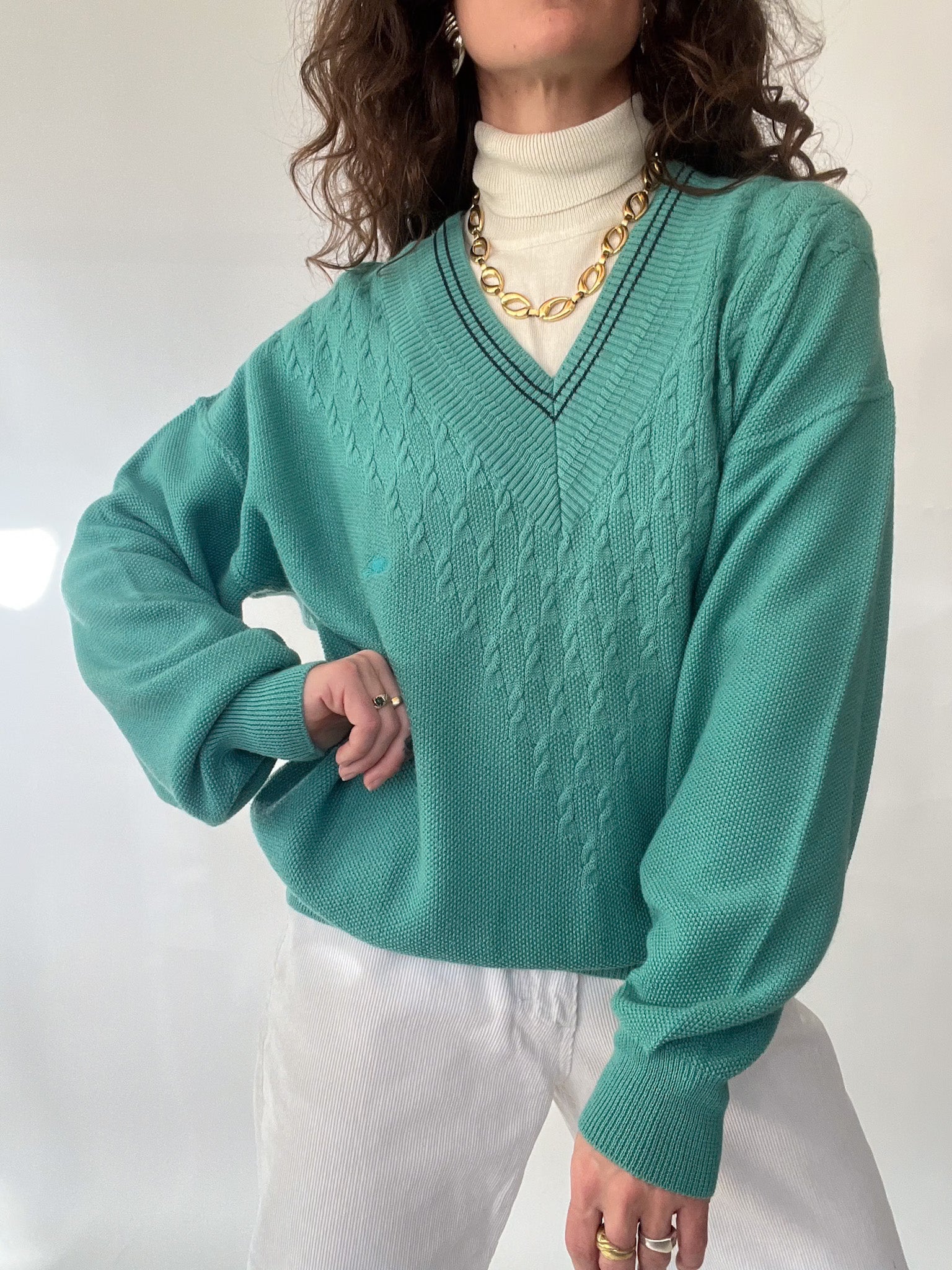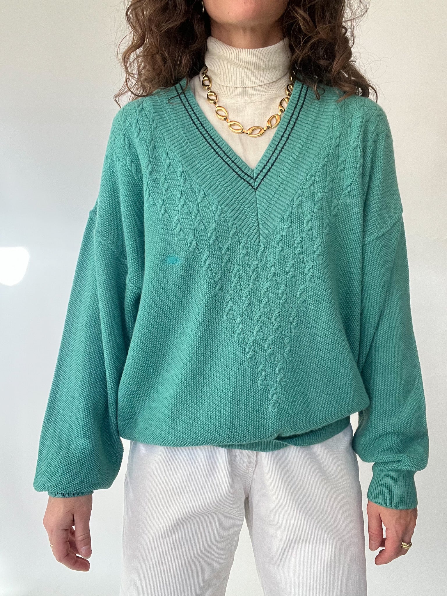 Vintage 80’s Aqua Textured V-Neck Pullover