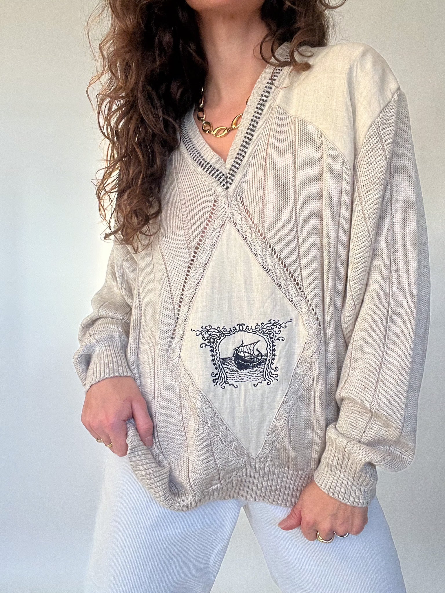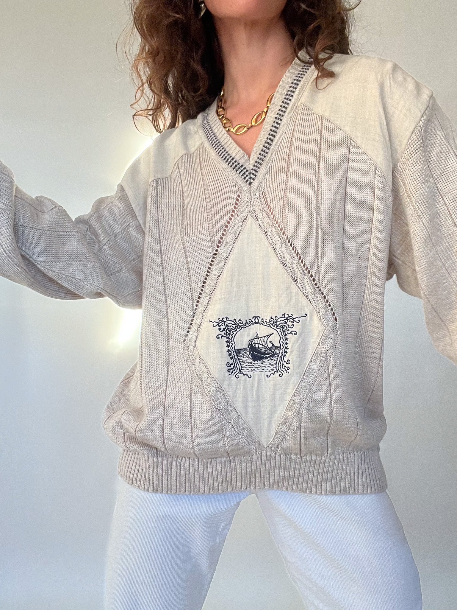 Vintage 80’s Beige Mixed-Knit Pullover