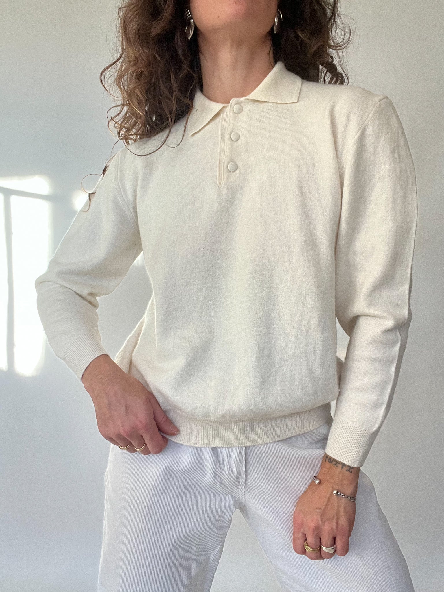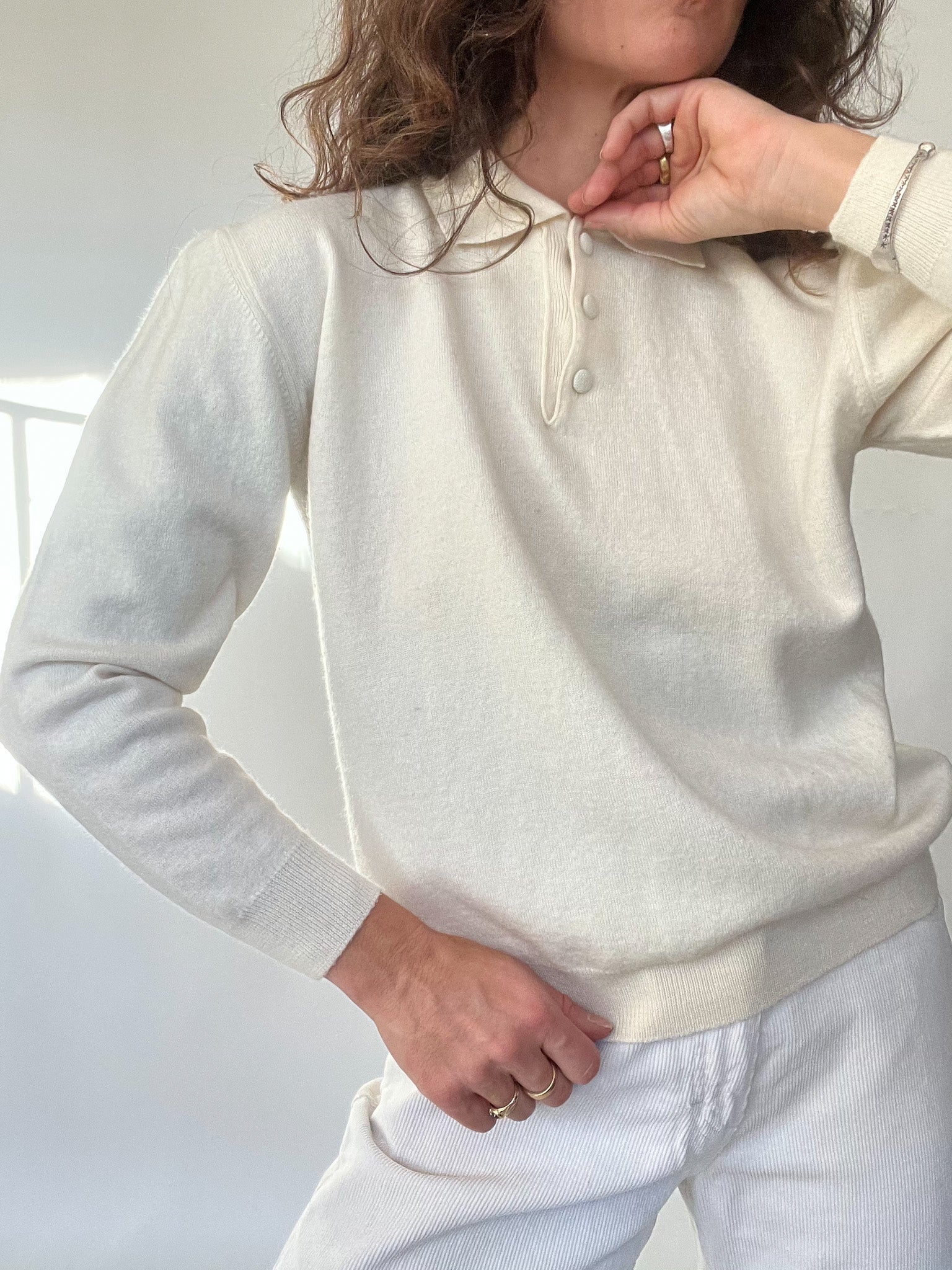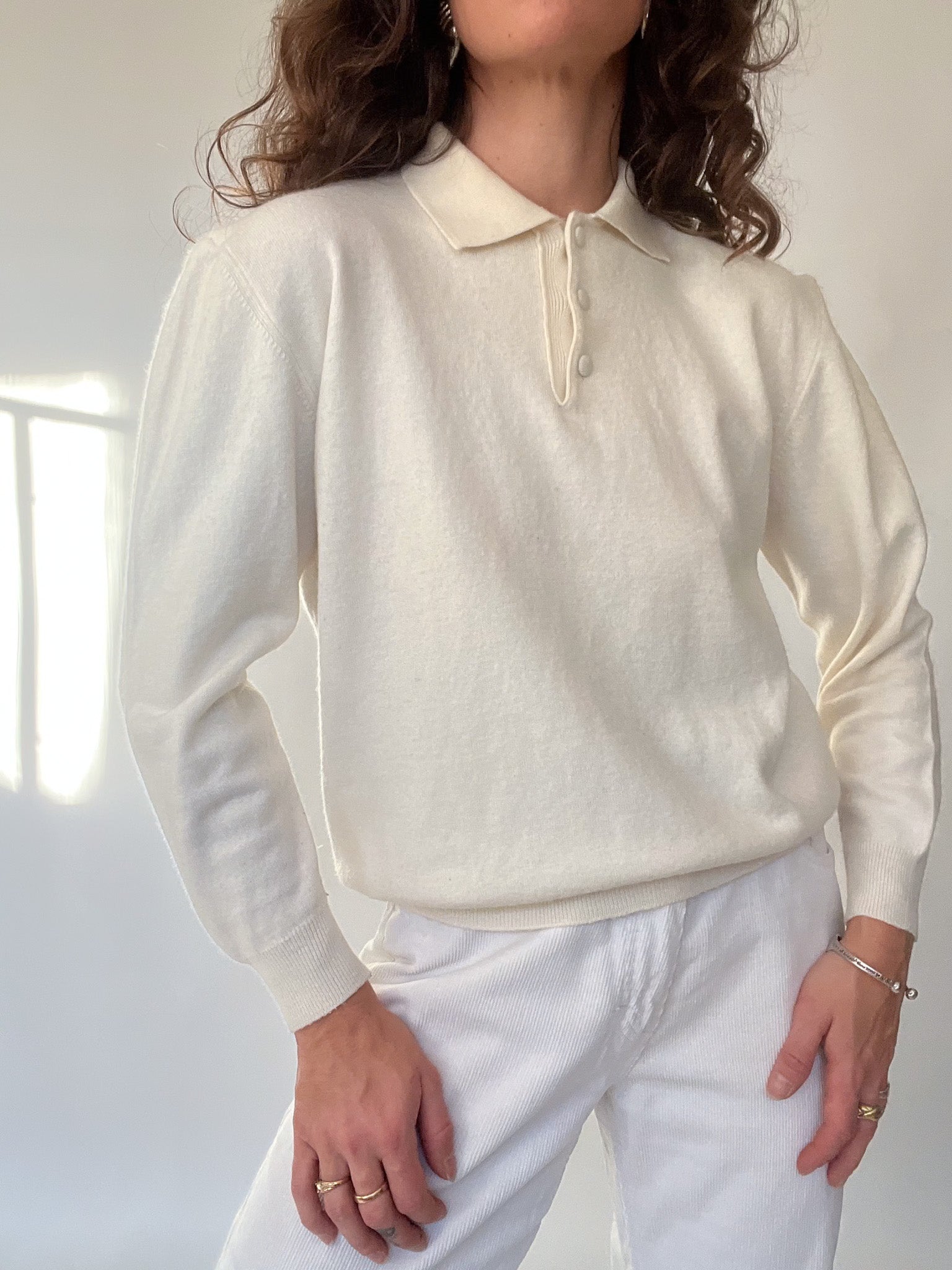 Vintage 80’s Cream Soft-Knit Polo Pullover
