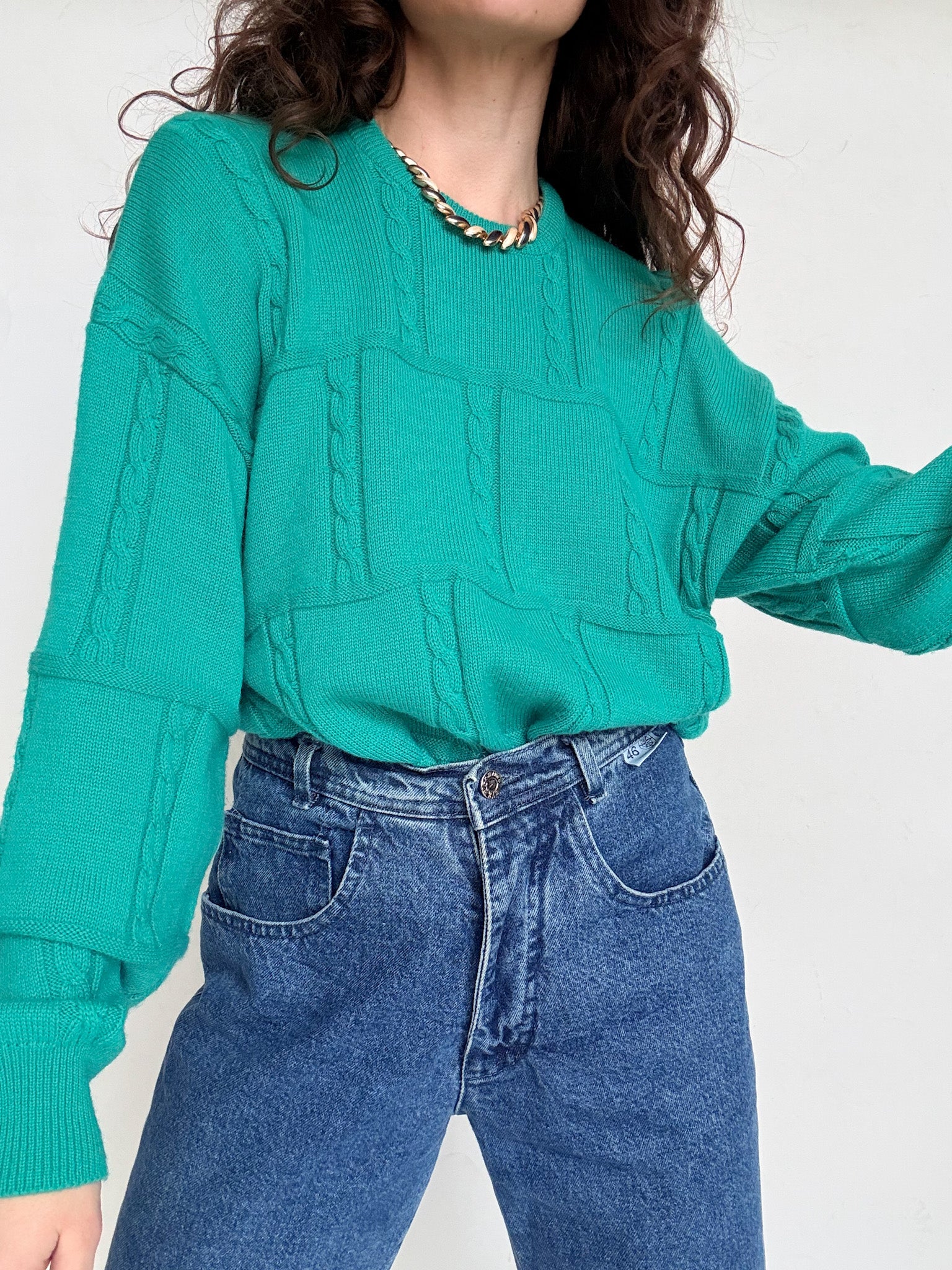 Chosen for its vibrant color and its iconic puffed sleeves, this vintage pullover is all about volume and attitude. The softly structured knit creates a bold silhouette while staying easy to wear. A statement piece that brings character instantly, whether styled with denim or tailored trousers.