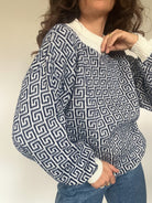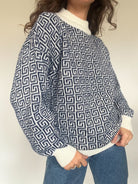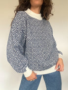 Vintage 80’s Navy & Cream Geometric Wool Sweater
