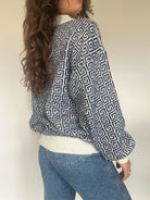 An emblem of 80’s sophistication, this navy and cream geometric knit sweater stands out with its bold pattern and structured silhouette. The intricate motif evokes the elegance of Italian knitwear from the decade, balancing graphic design with timeless warmth. Perfectly cozy yet refined, it captures the spirit of Skorpiones Vintage — celebrating individuality through strong, distinctive pieces that never go unnoticed.
