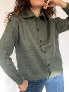 A soft, timeless classic crafted in pure merino wool — this vintage cardigan brings subtle sophistication with its muted olive tone and beautifully fuzzy texture. Its tailored collar and clean button-down silhouette give it that effortless, understated elegance that defines Skorpiones Vintage: refined pieces with soul, made to empower your everyday style with intention and authenticity. Warm, lightweight, and incredibly soft, it’s a piece that feels both iconic and comforting — ideal for layering or wearing as a statement knit on its own.