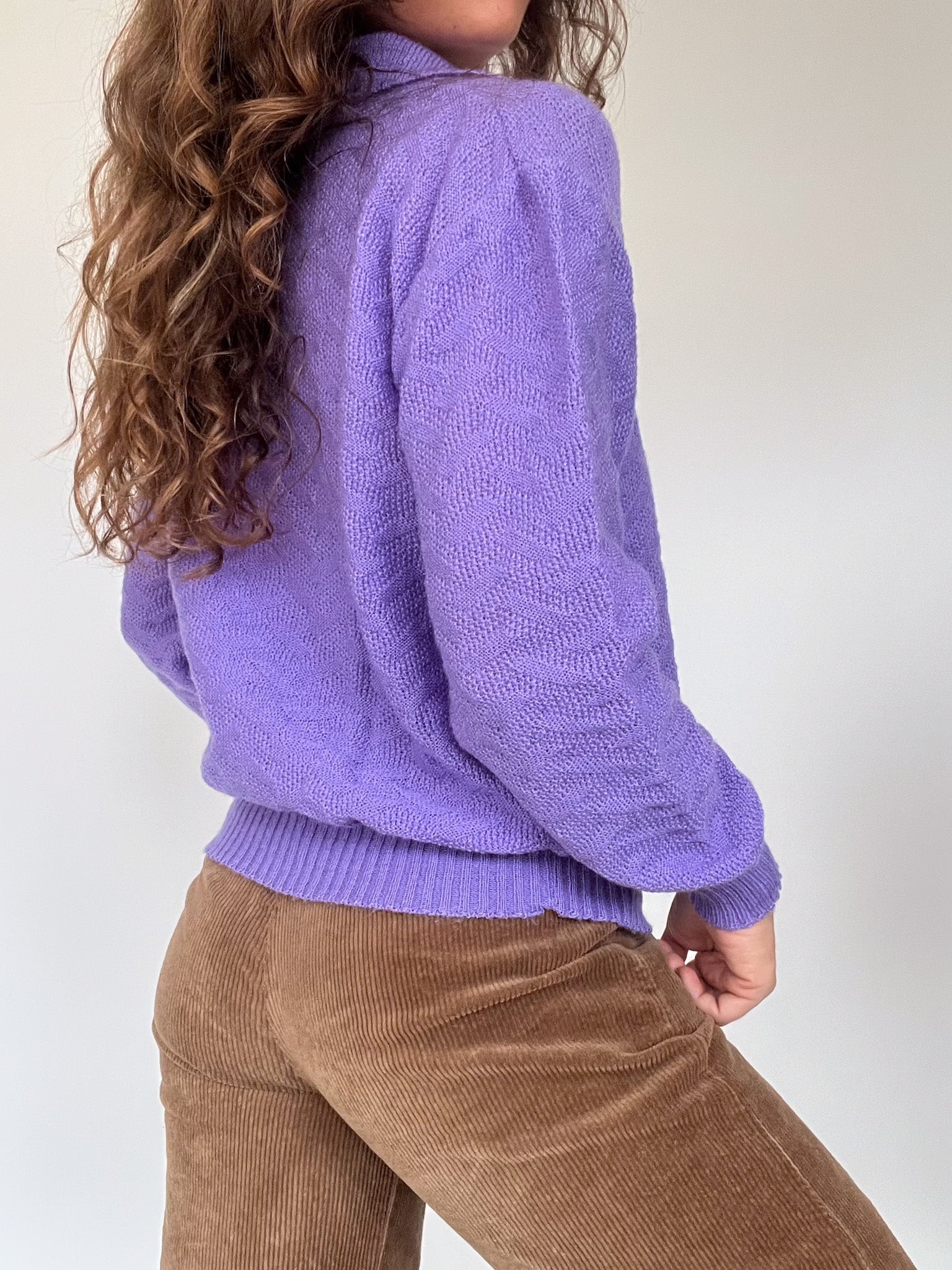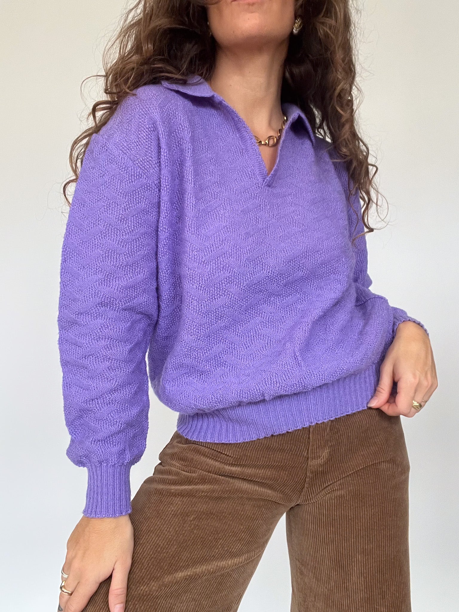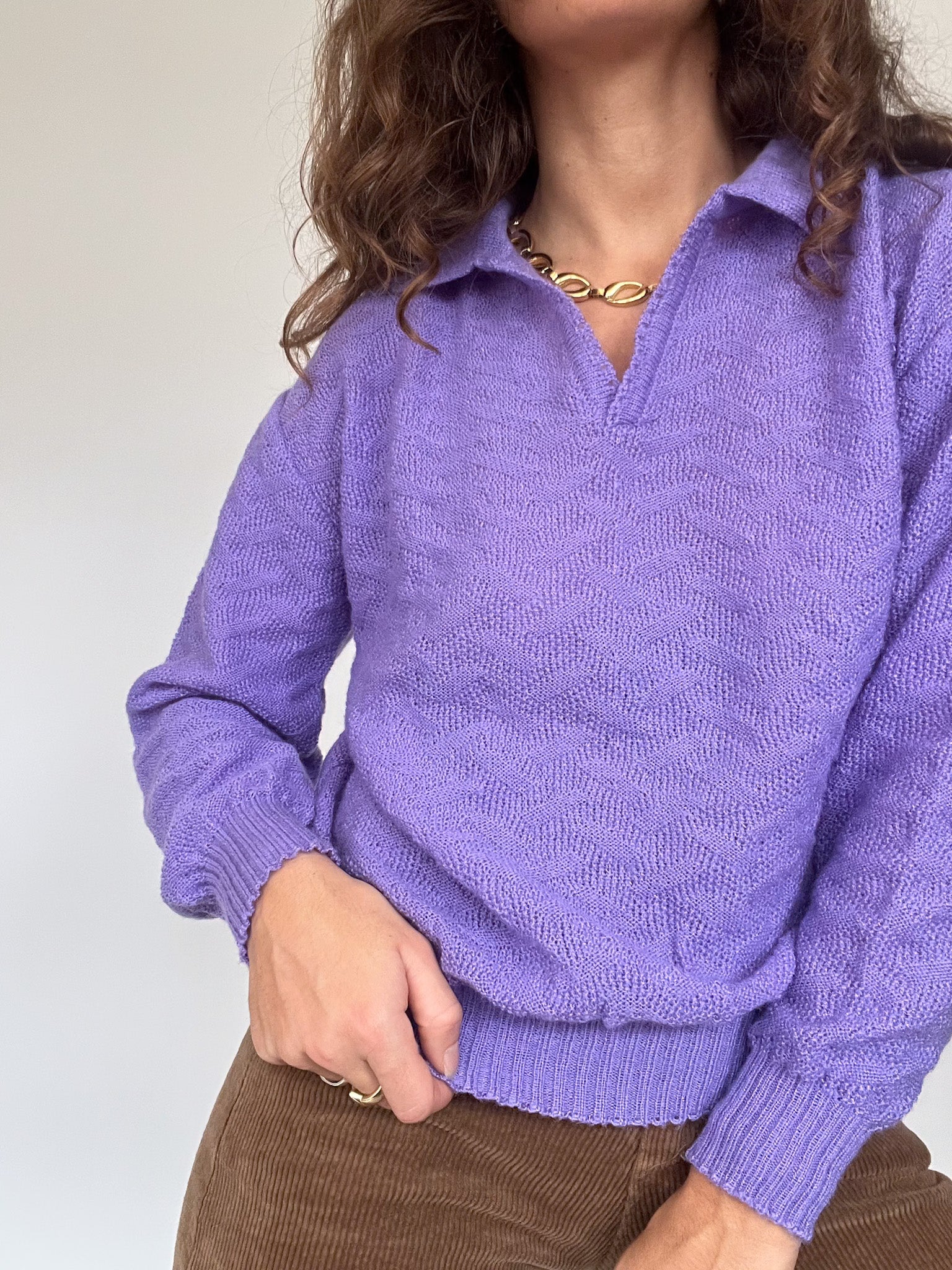 Vintage 80’s Purple Patterned Knit Polo Sweater