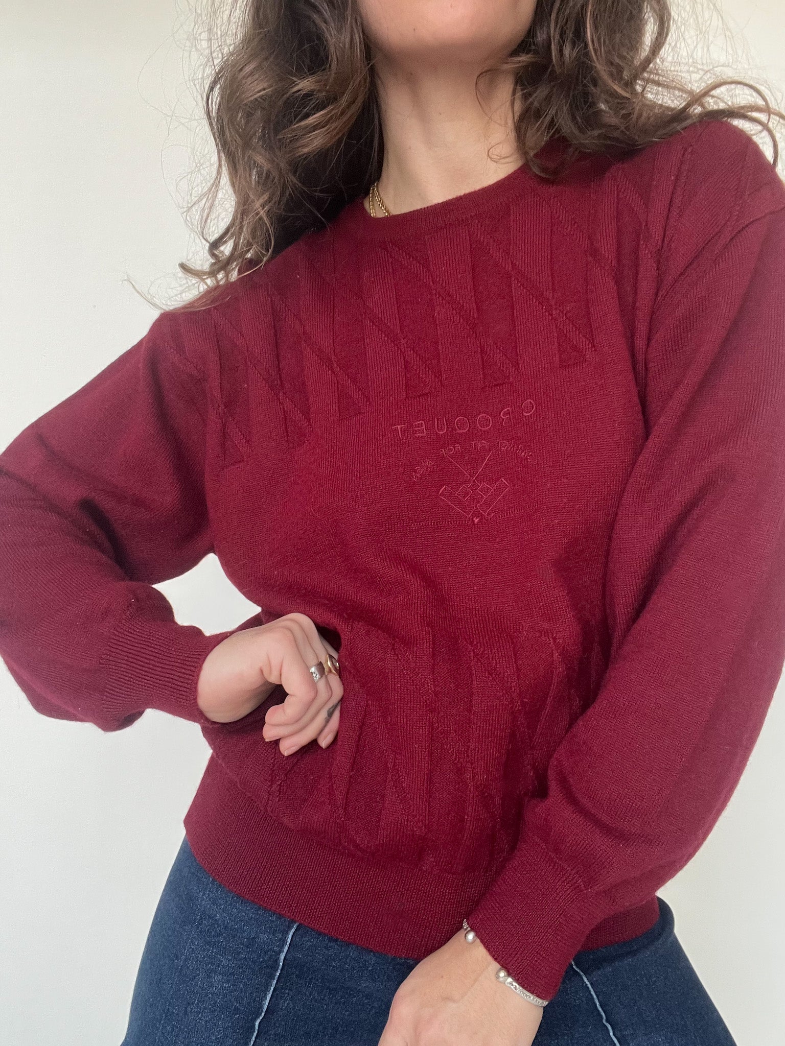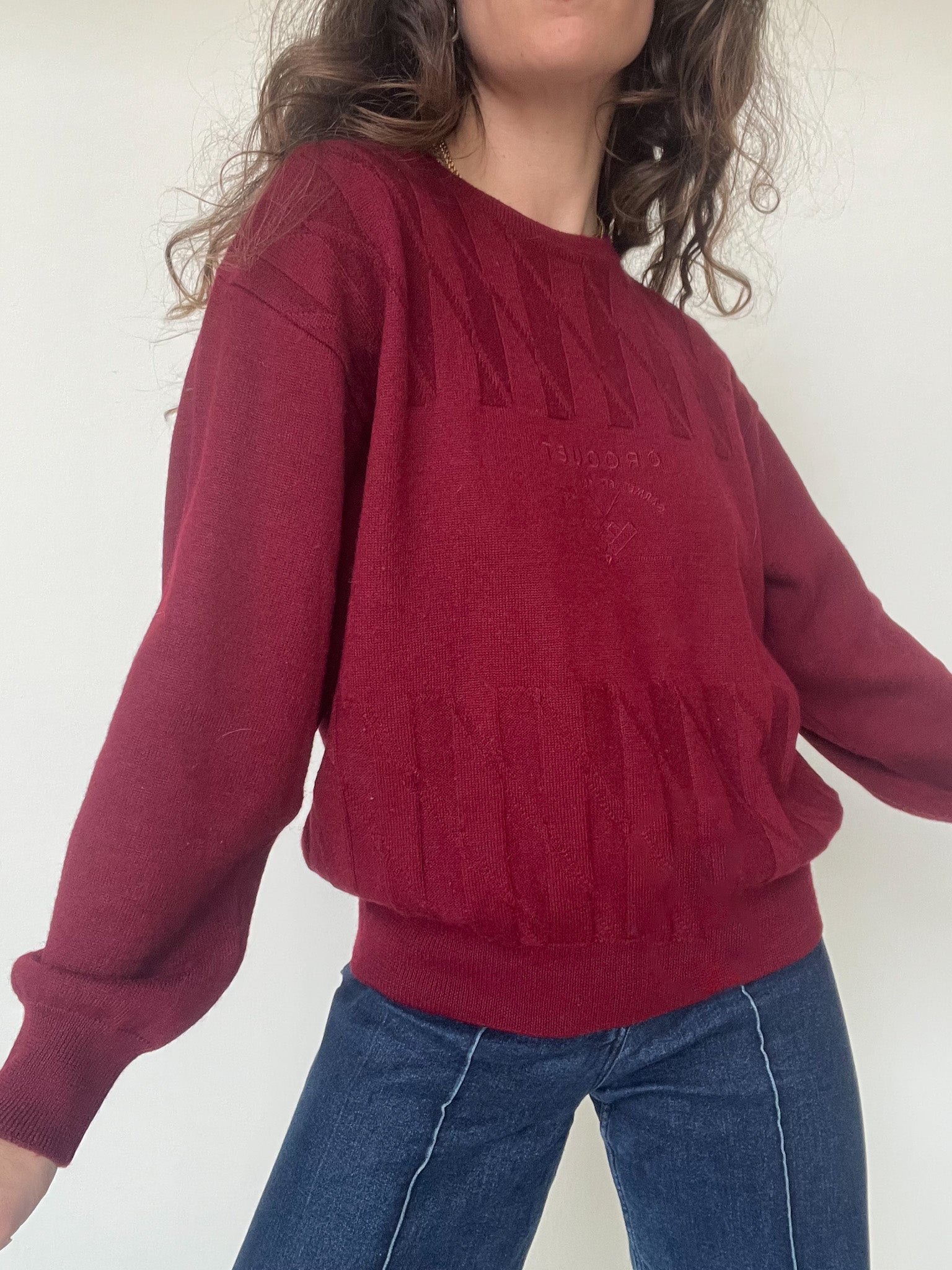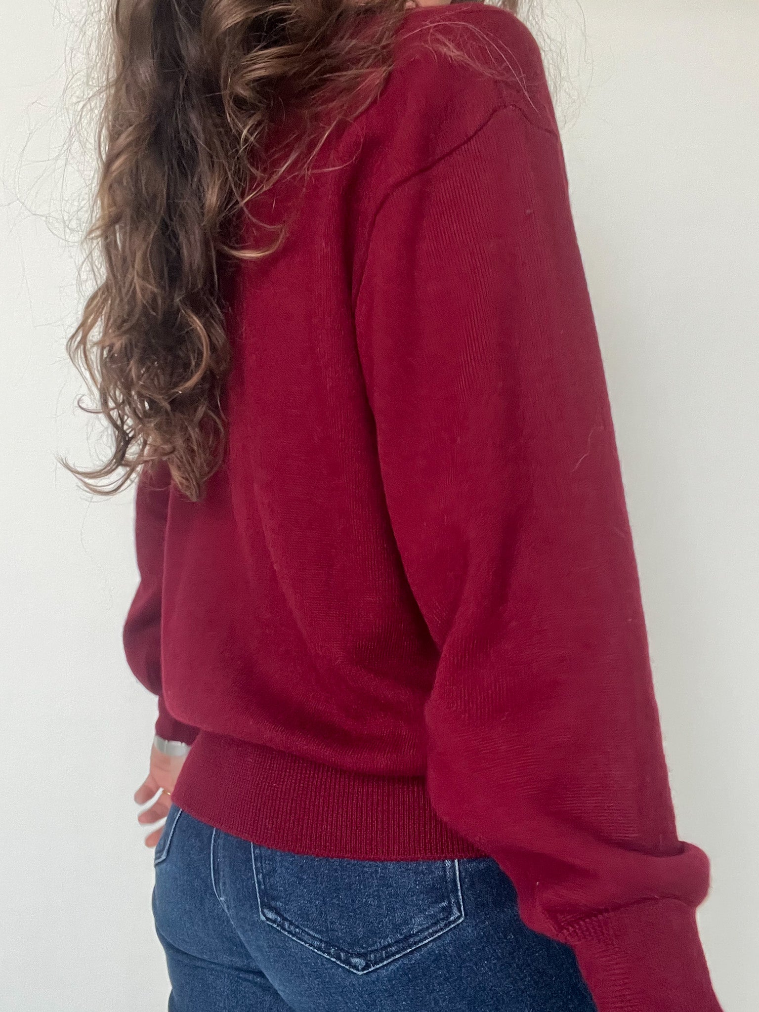 The wool and acrylic blend offers warmth while remaining comfortable and easy to wear. Its clean cut and rich burgundy shade make it a versatile pullover, perfect on its own or layered under a jacket or coat. A timeless vintage knit with character, designed to be worn season after season.