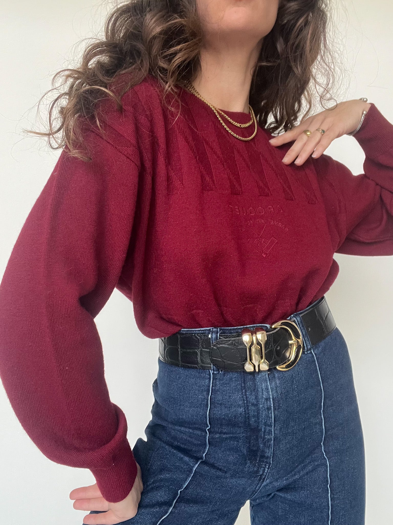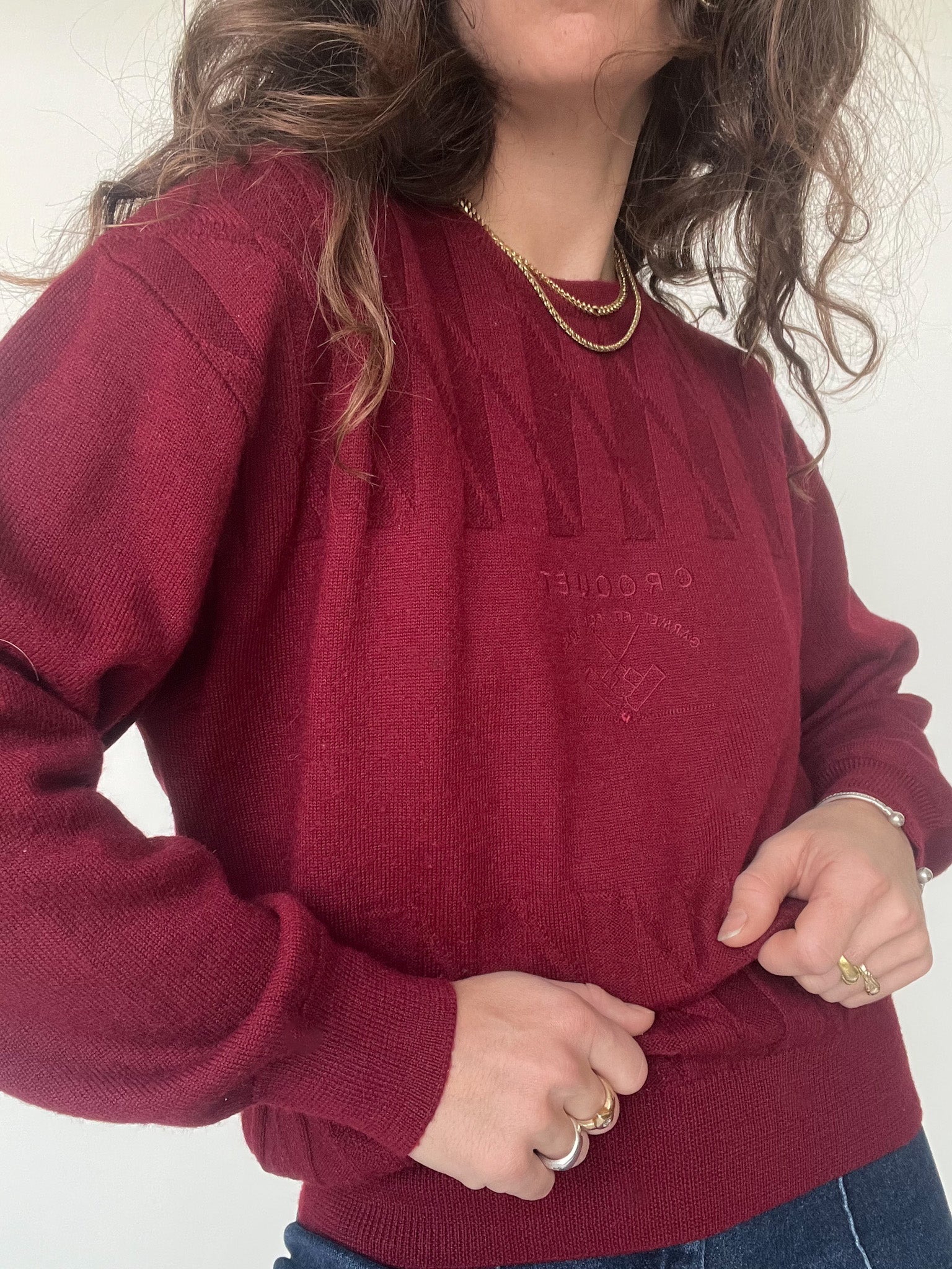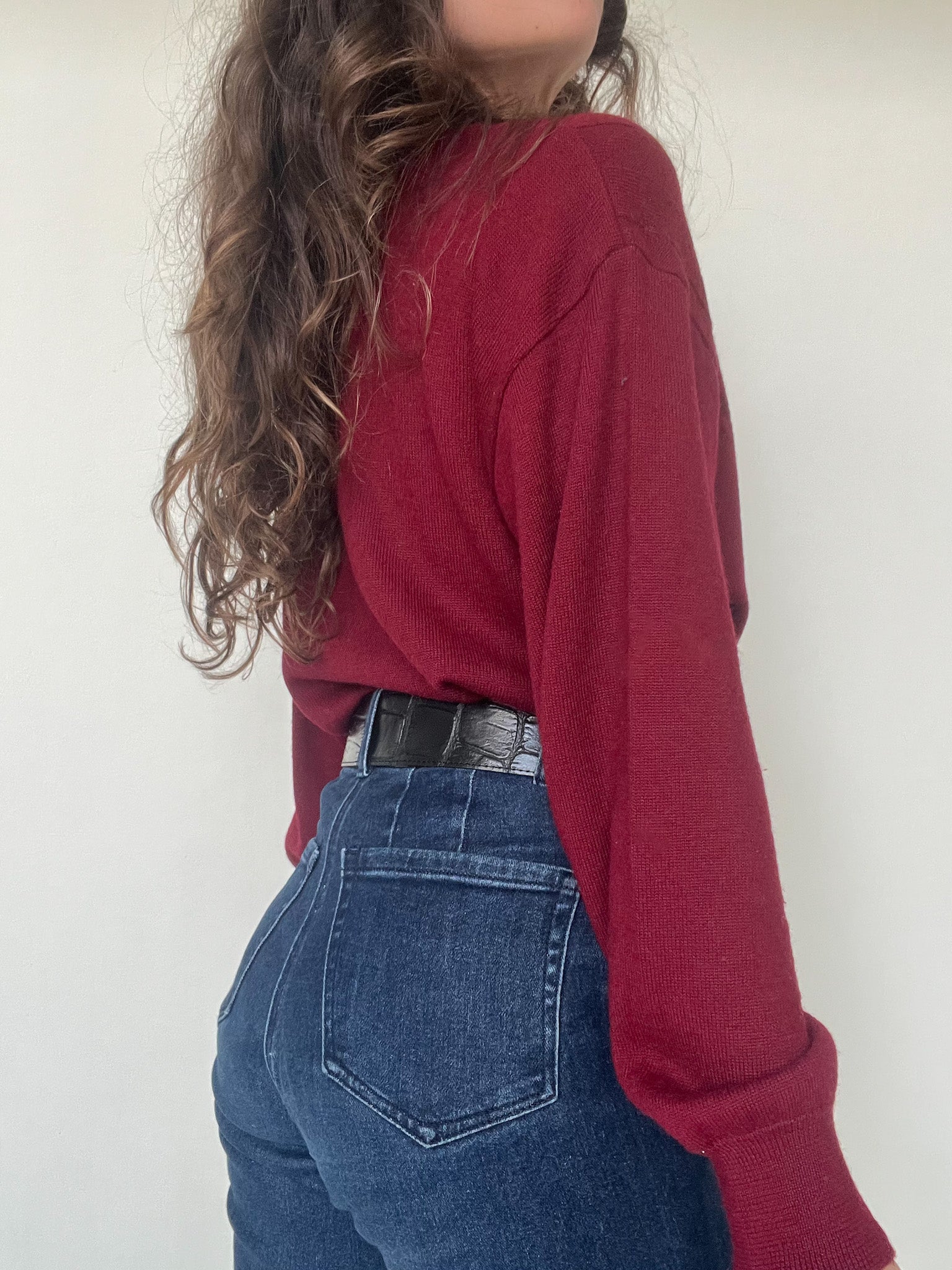 The wool and acrylic blend offers warmth while remaining comfortable and easy to wear. Its clean cut and rich burgundy shade make it a versatile pullover, perfect on its own or layered under a jacket or coat. A timeless vintage knit with character, designed to be worn season after season.