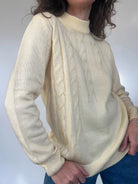 A creamy butter-yellow knit that feels both soft and luminous — this vintage 90’s cable sweater is the definition of understated charm. Its clean design and warm tone bring a fresh softness to any look, while the cable details add just enough texture. This is the kind of timeless piece Skorpiones Vintage loves: feminine in a subtle way, easy to wear, and full of gentle confidence.