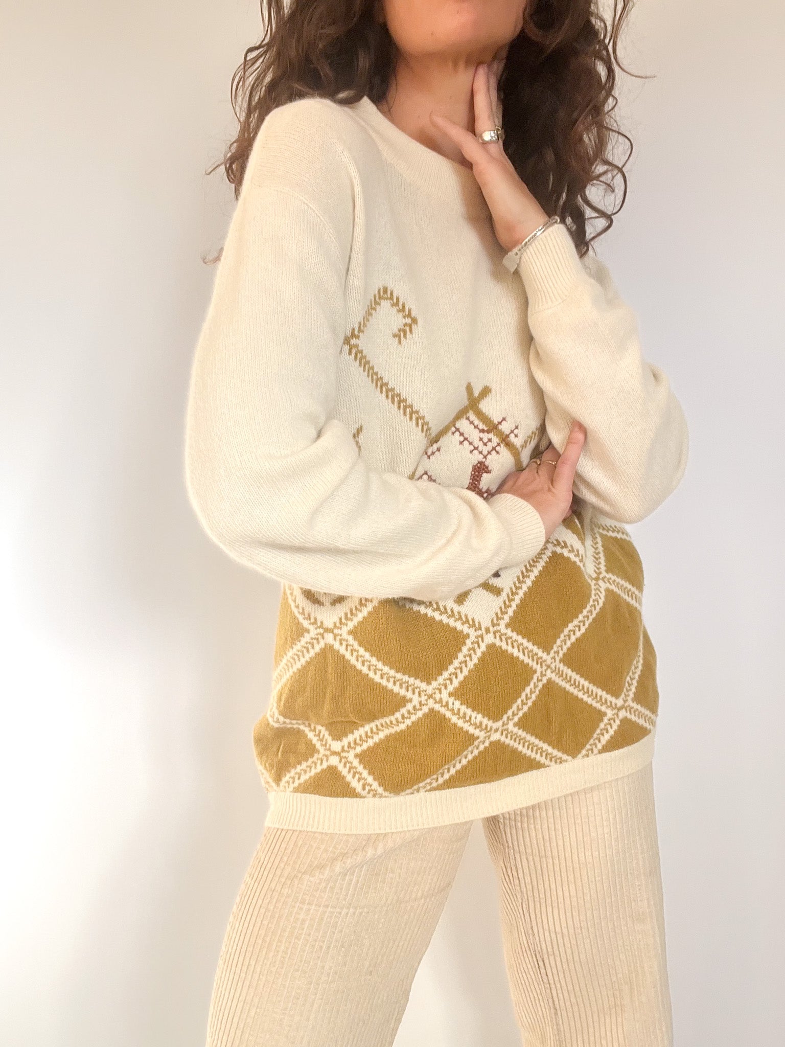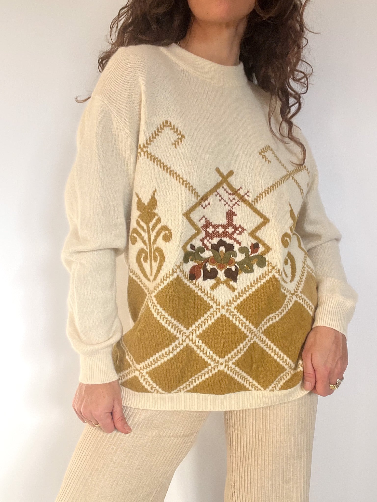 Vintage 90’s Cream & Mustard Cosy Patterned Pullover