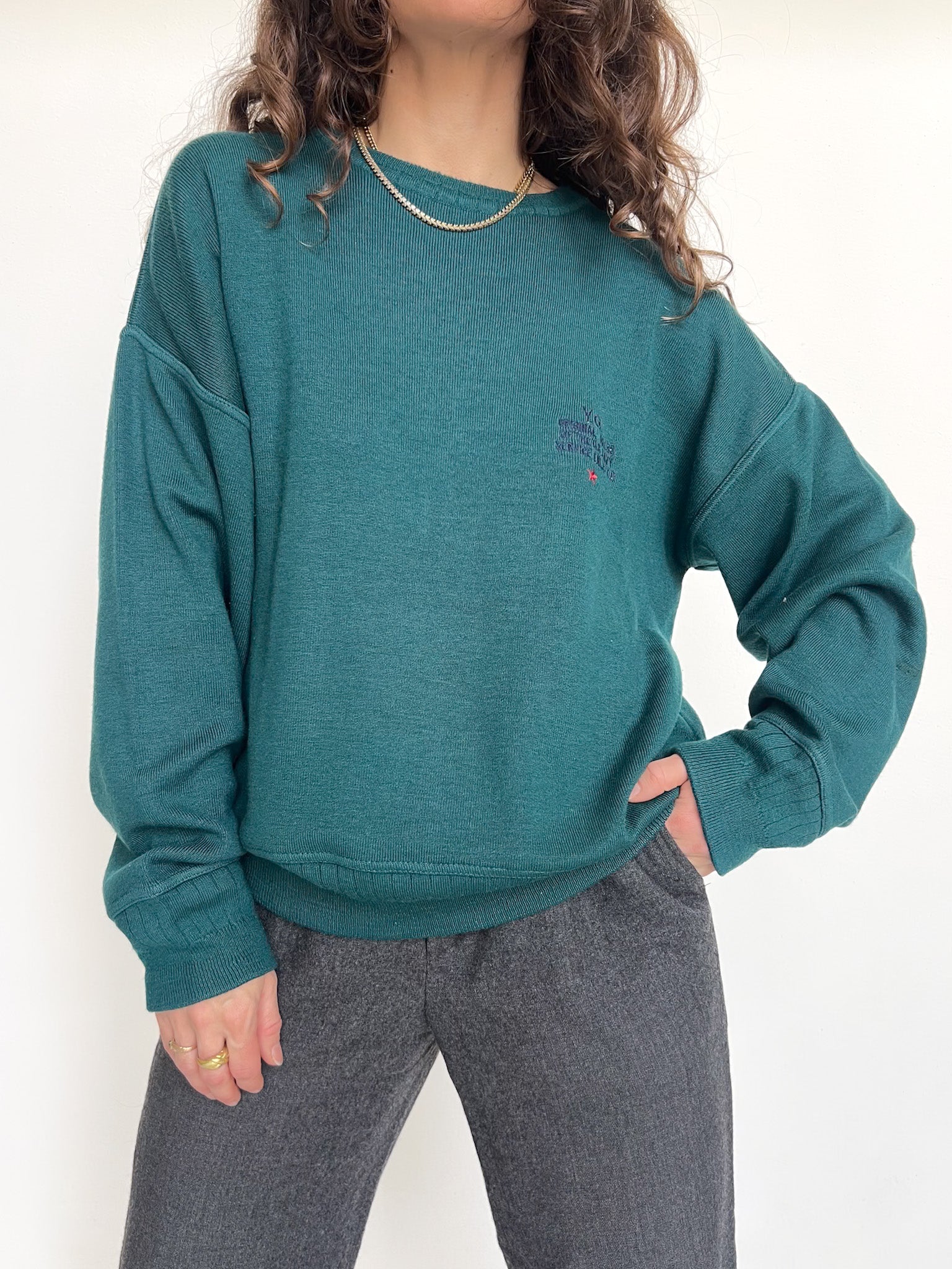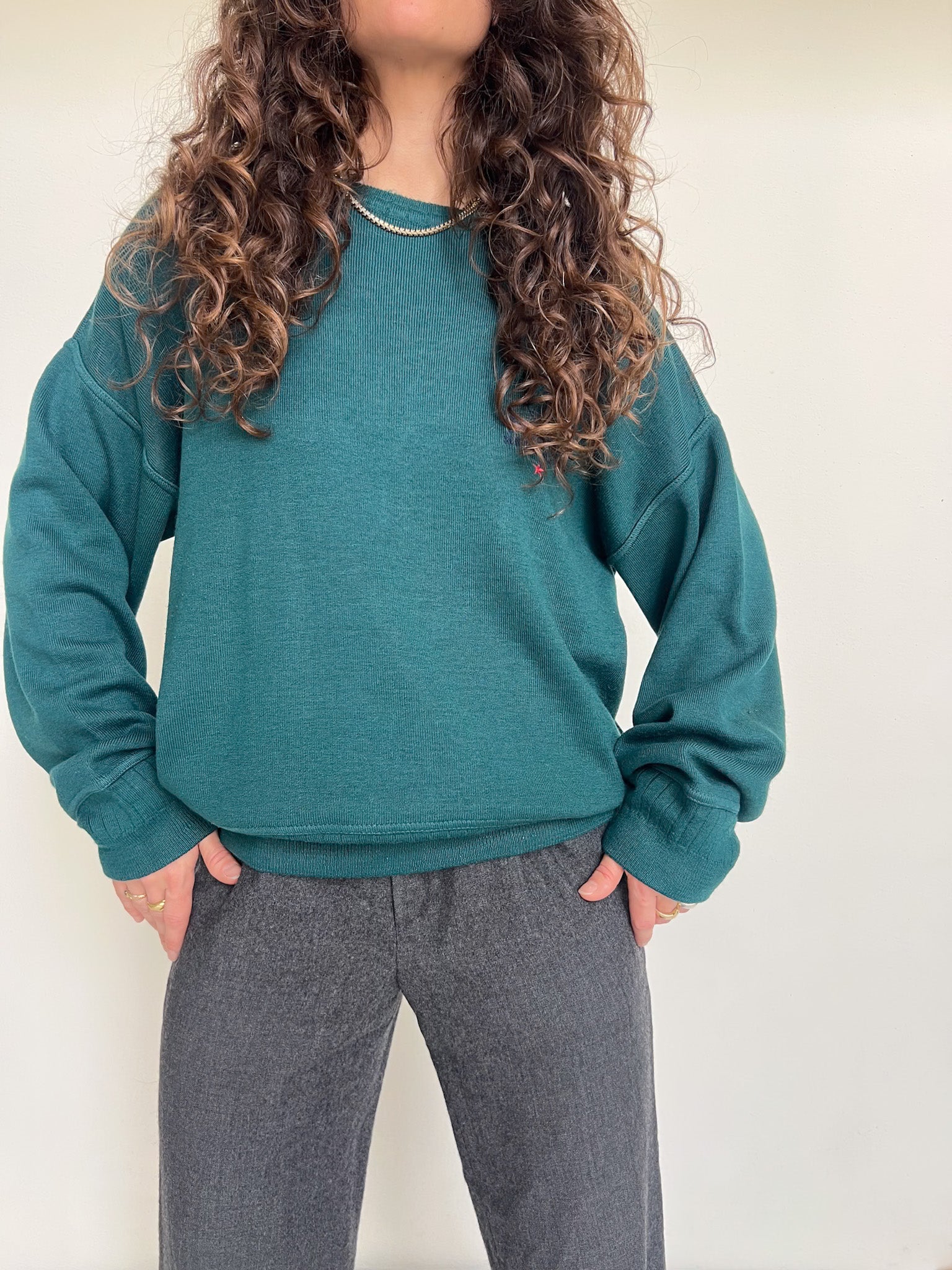Chosen for its vibrant green shade and that instantly cozy feel it gives once worn. I was drawn to the collar details, subtle yet distinctive, which add character and elevate the silhouette beyond a classic sweatshirt. A strong vintage piece that balances comfort and style effortlessly.