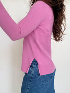 Chosen for its luxurious feel and standout colour, this cashmere knit combines softness with attitude. The candy pink shade brings a bold yet elegant touch, while the side slits add movement and a modern edge to the silhouette. A refined statement piece that feels as good as it looks, easy to wear on its own or layered.