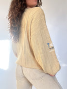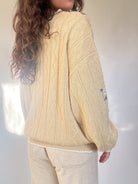 Vintage 90’s Pale Yellow & Navy Detailed V-Neck Sweater