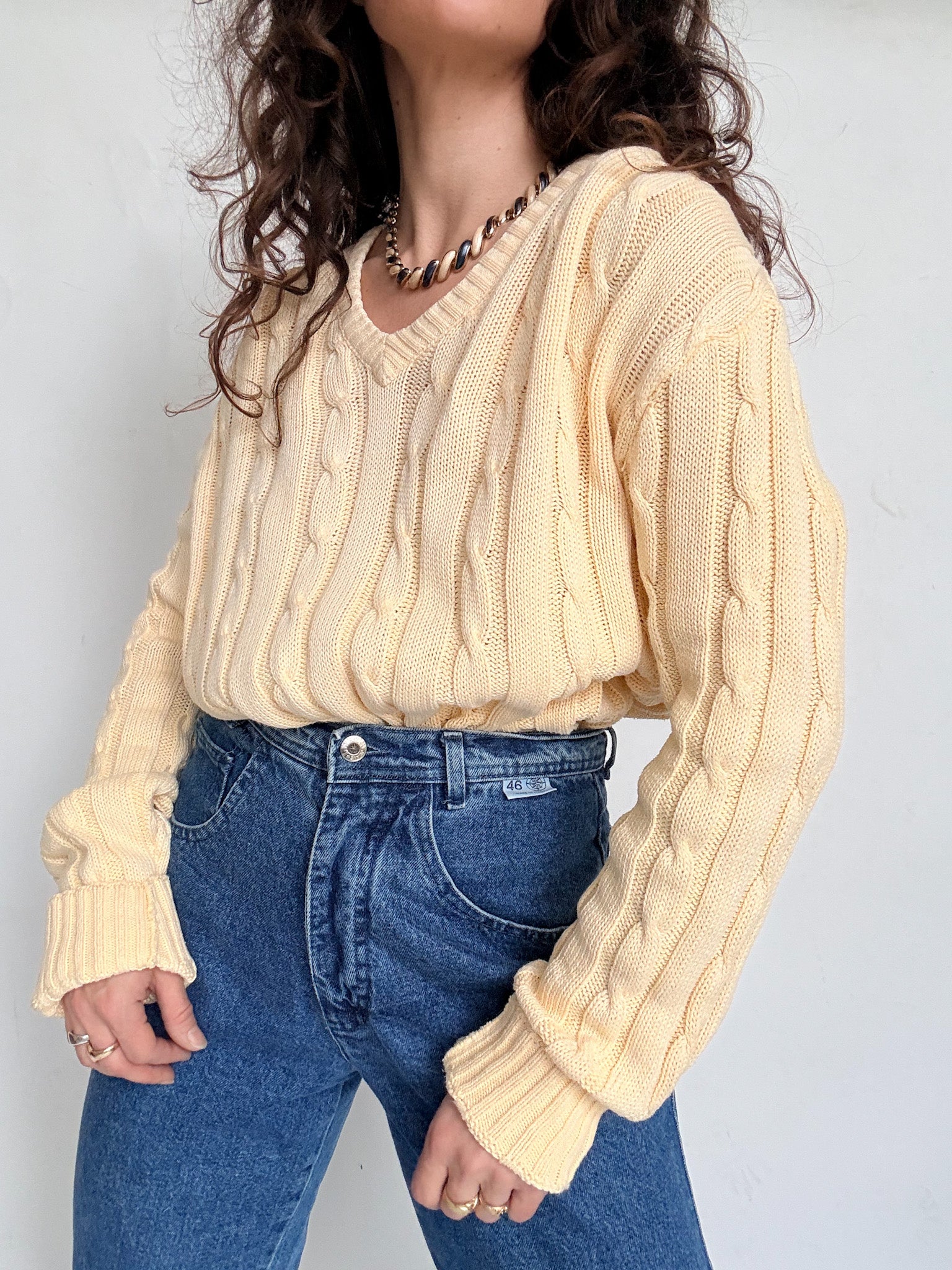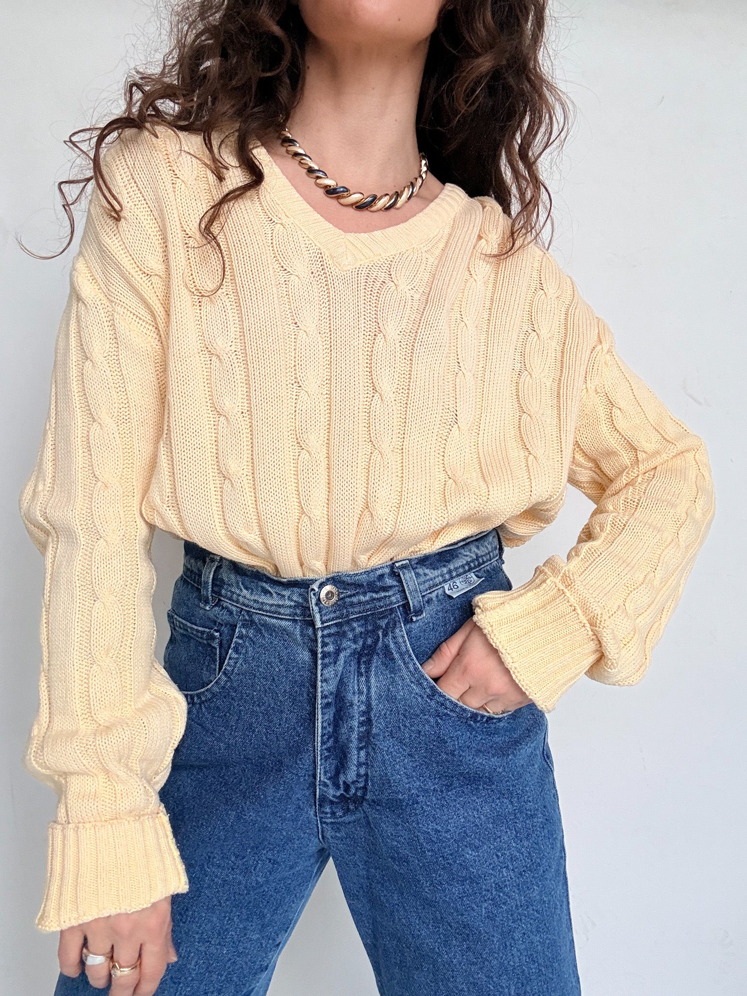 Vintage 90’s Soft Peach Cable Knit Pullover