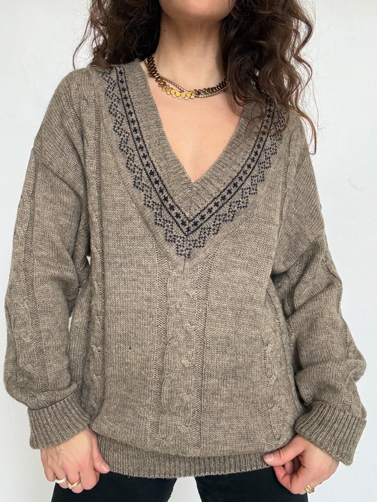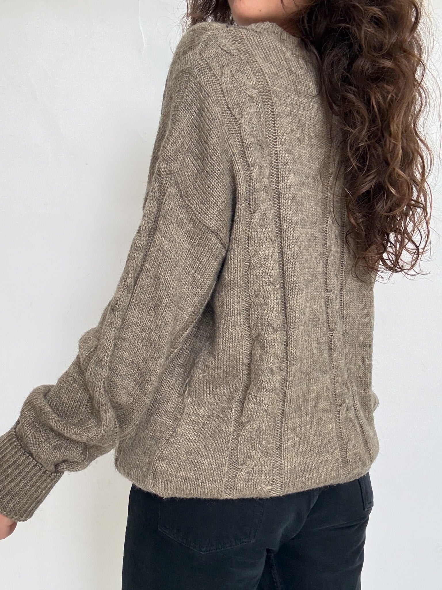 Vintage 90’s Taupe V-Neck Cable Knit