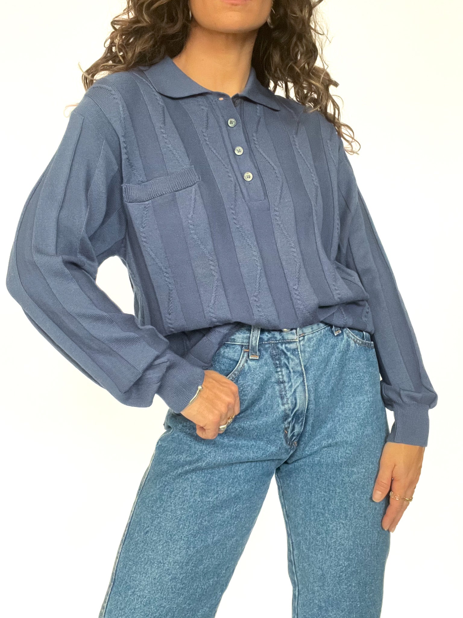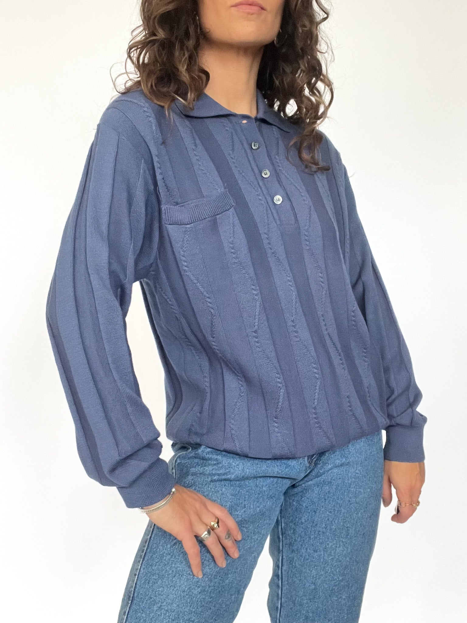 Vintage Blue Knitted Polo Pullover