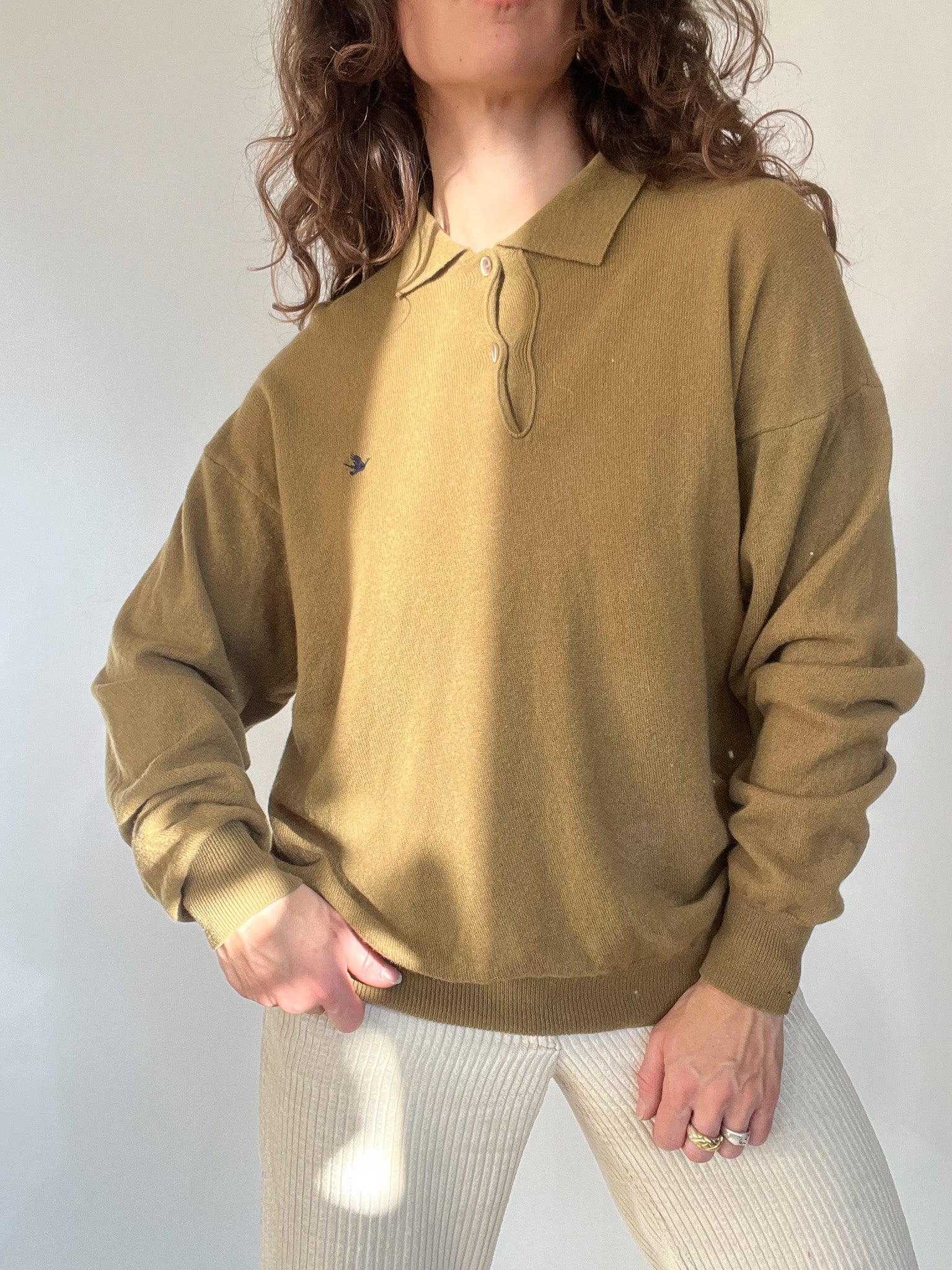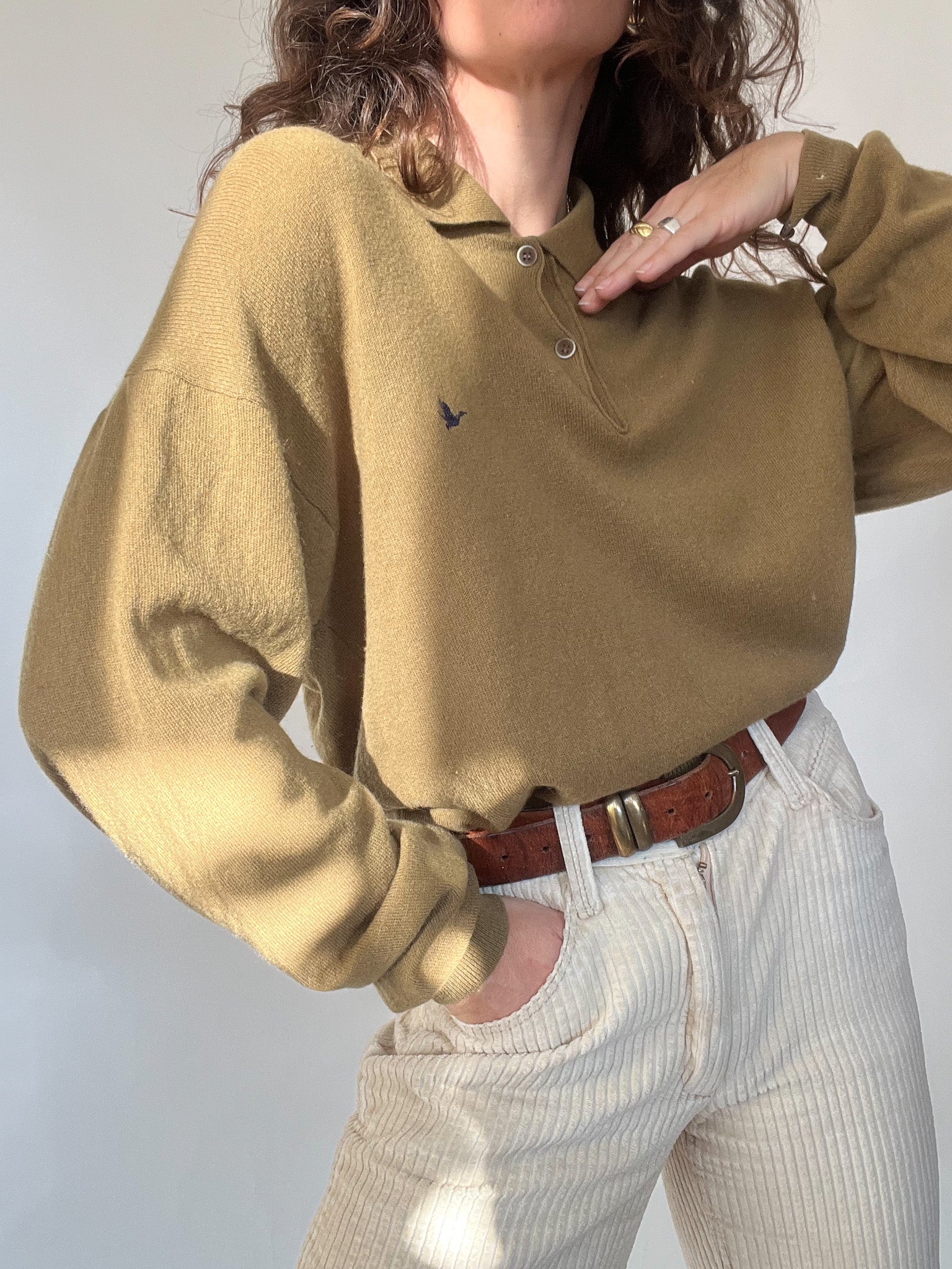 A classic and understated piece that embodies effortless winter style. This olive wool polo knit was selected for its refined simplicity — the kind of essential you keep for years because it works with absolutely everything. Its warm, earthy tone instantly elevates even the most minimal outfit, while the soft wool body keeps you comfortably warm through the colder months. A timeless everyday knit that brings subtle elegance to any wardrobe.