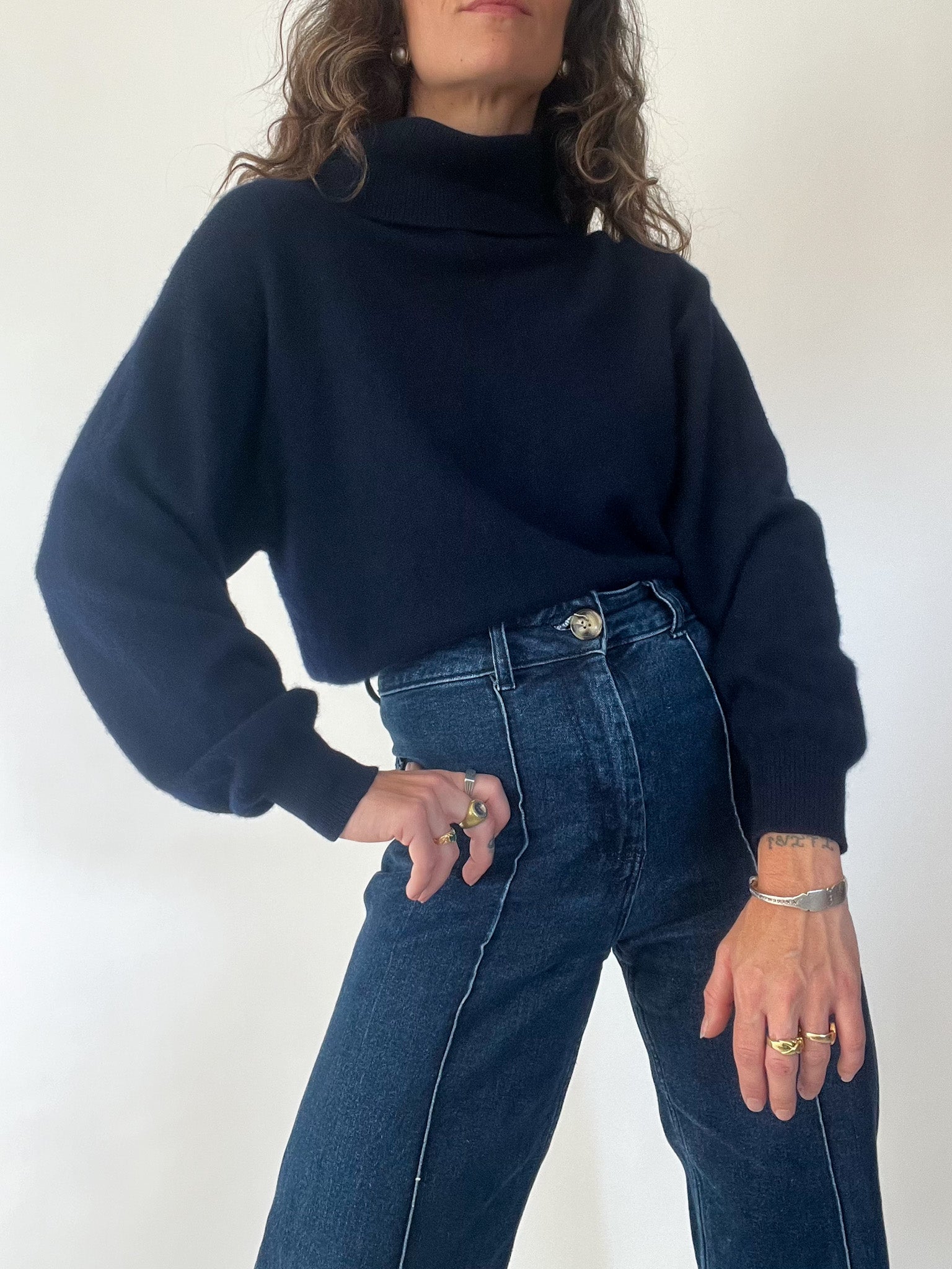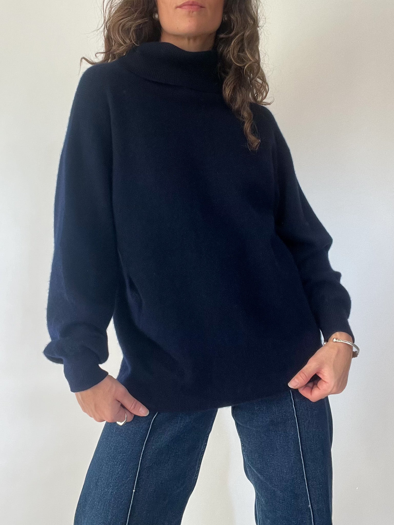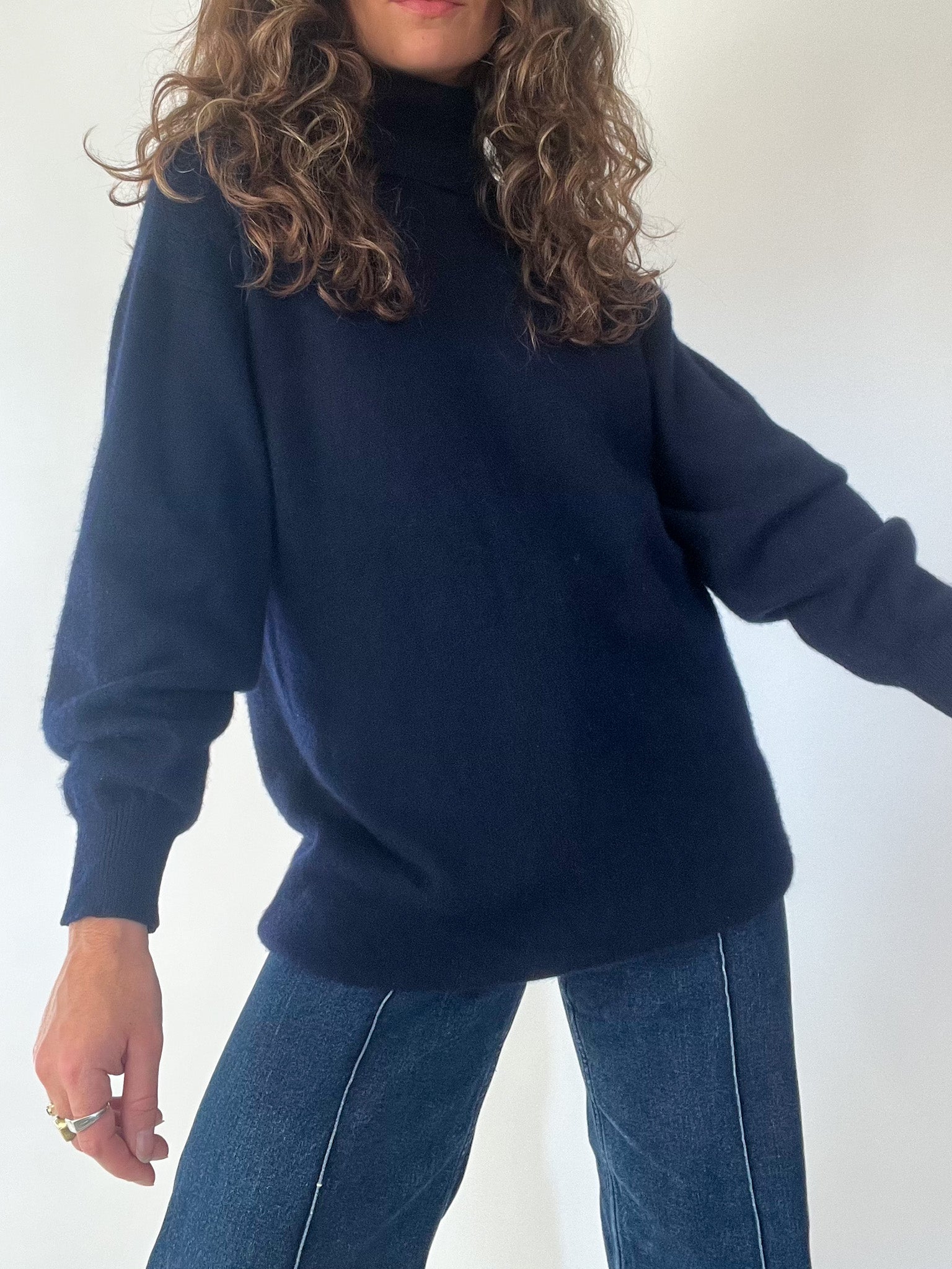 Vintage Navy Cashmere Turtleneck Pullover