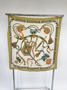 Vintage Khaki Cream and Turquoise Silk Scarf
