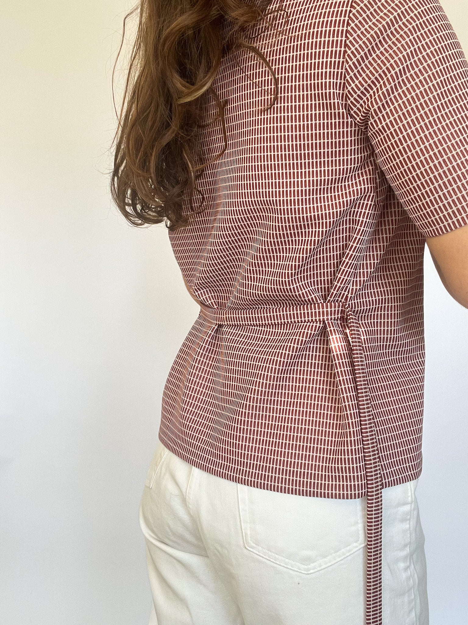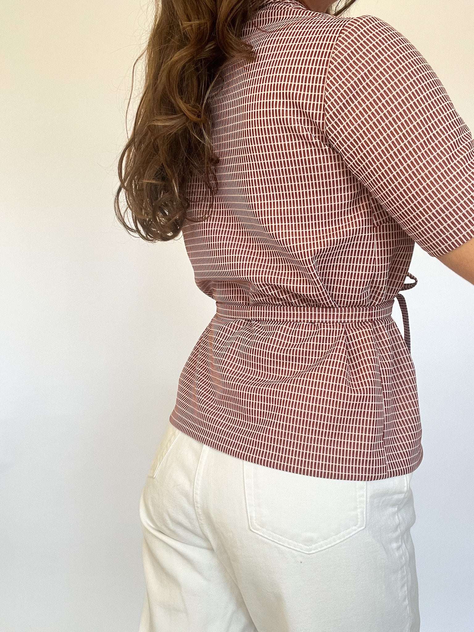 A rare 70s find, this fitted shirt is all about elegant structure. With its geometric print, short sleeves, and matching waist tie, it defines a silhouette that’s feminine, sharp, and bold. The tailoring reflects the timeless vision of Skorpiones Vintage — where every detail matters and each piece is meant to empower.