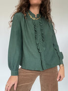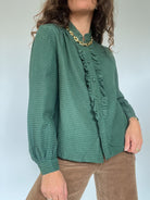 Vintage 80’s Emerald Green Ruffled Handmade Blouse