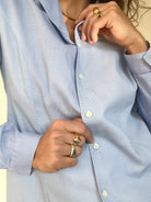 A minimalist gem from the 80’s, this light blue blouse embodies timeless sophistication. Its clean cut and delicate collar bring a subtle femininity, while the structured cotton fabric adds a refined edge. Perfect for those who appreciate effortless elegance — a true expression of Skorpiones Vintage’s philosophy of strength through simplicity.