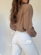Minimalist yet refined, this taupe silk blouse is a versatile wardrobe essential. Its fluid drape and understated sheen make it ideal for pairing with tailoring or denim alike. A perfect example of quiet luxury, it embodies the Skorpiones Vintage ethos: timeless, elegant, and empowering.