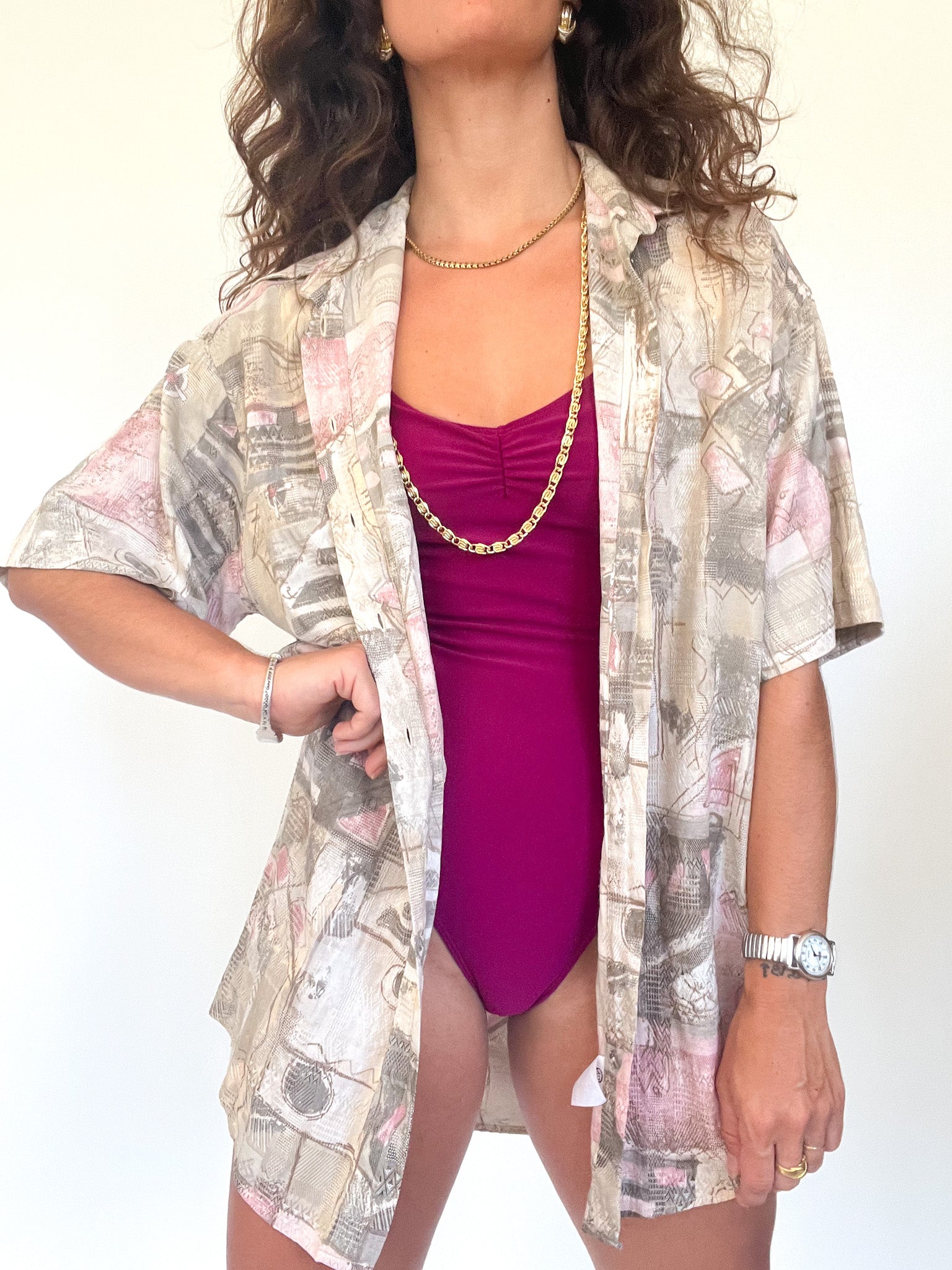 With its blurred pastel tones and oversized cut, this shirt feels like wearable spontaneity. Each line of its abstract print evokes movement and expression, like a snapshot from a summer memory. Handpicked for its Italian flair and fluid shape, it’s a piece made to empower — whether worn open over a bikini or tucked in for a soft masculine-feminine contrast. Because at Skorpiones, ease and impact are never opposites.