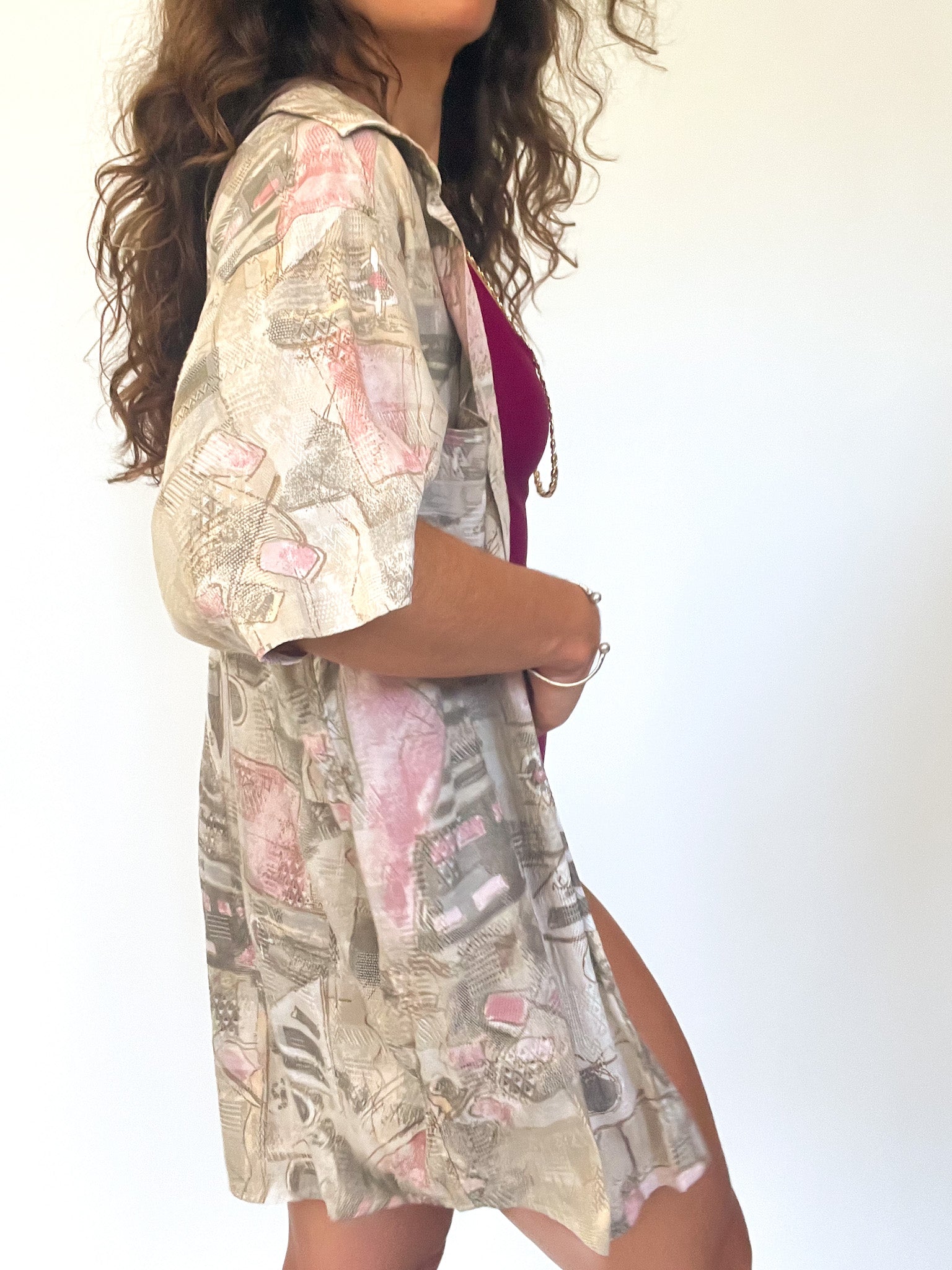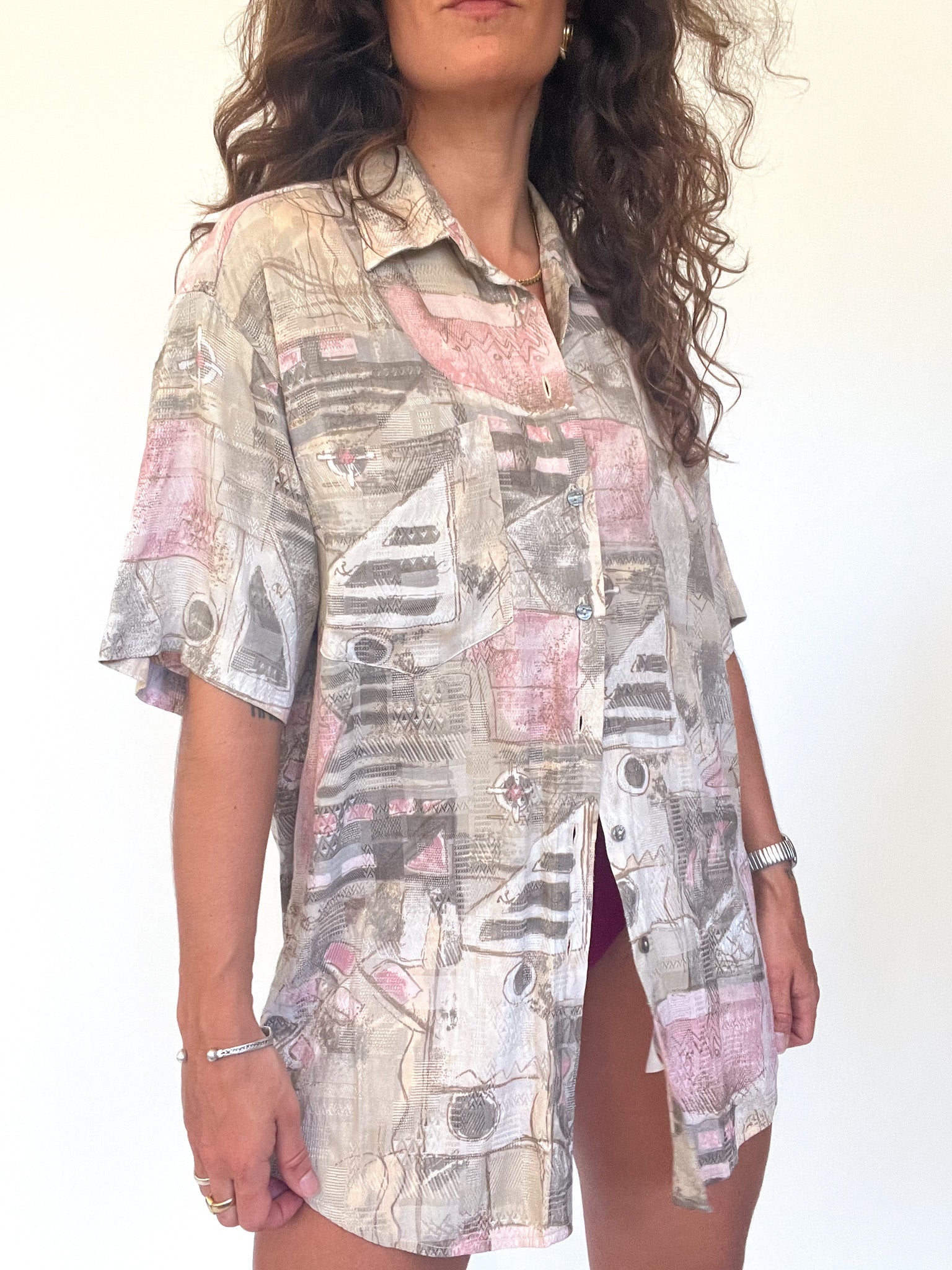 - Special features: Abstract pastel print, oversized fit, soft fluid cotton, short sleeves
