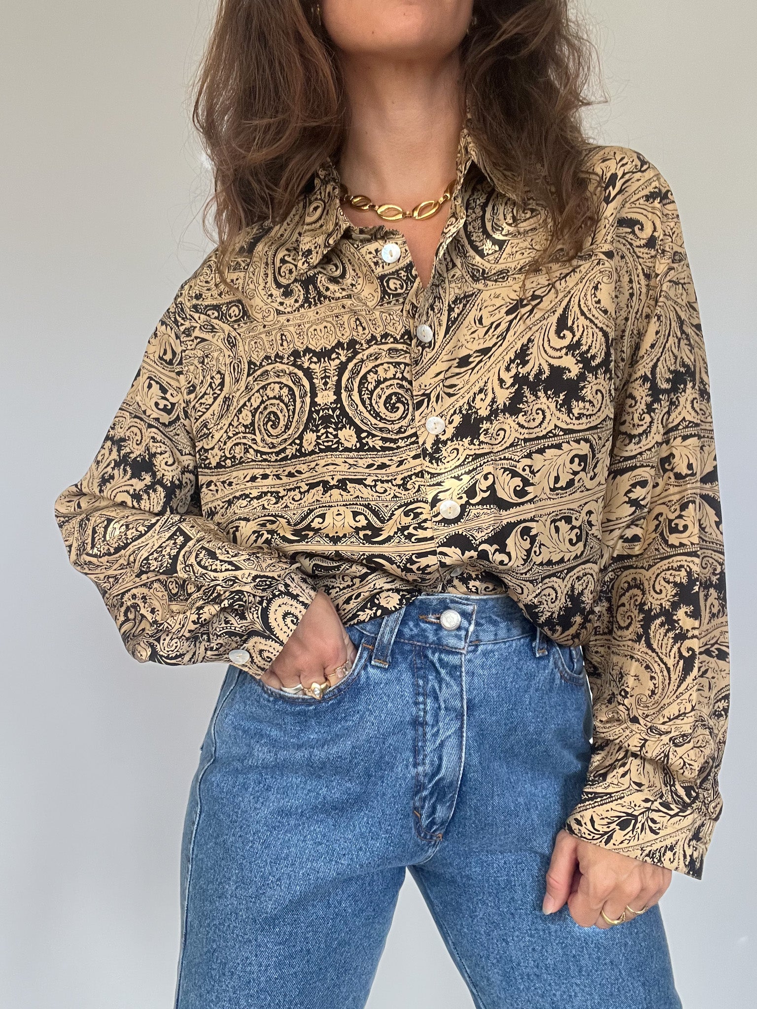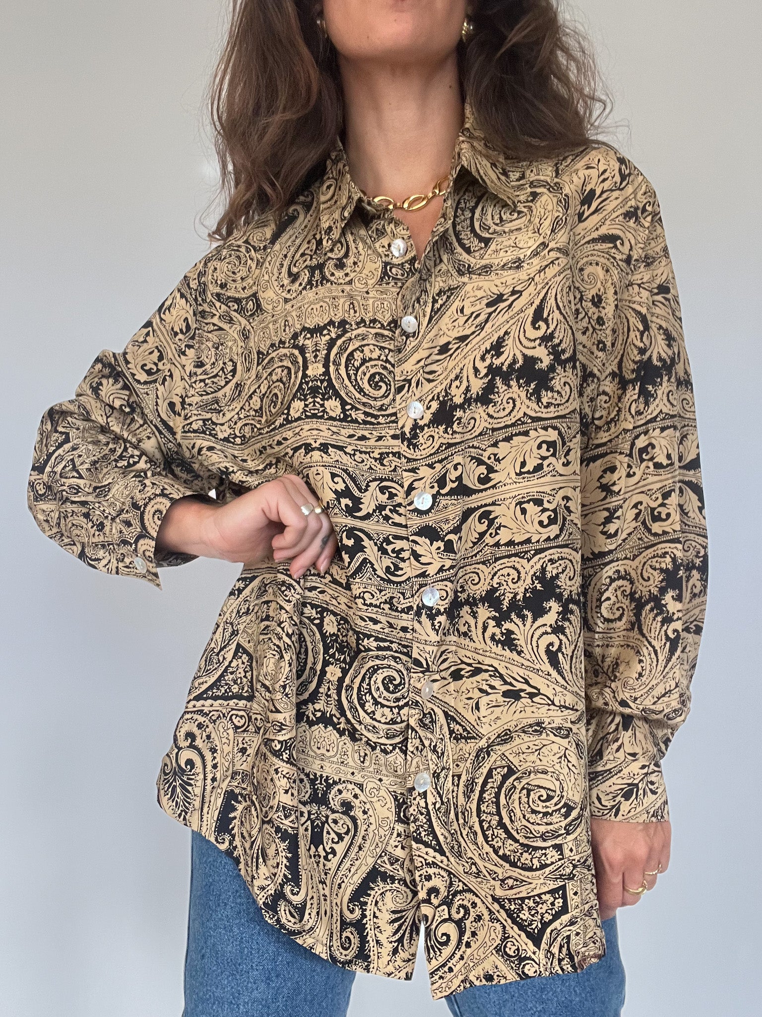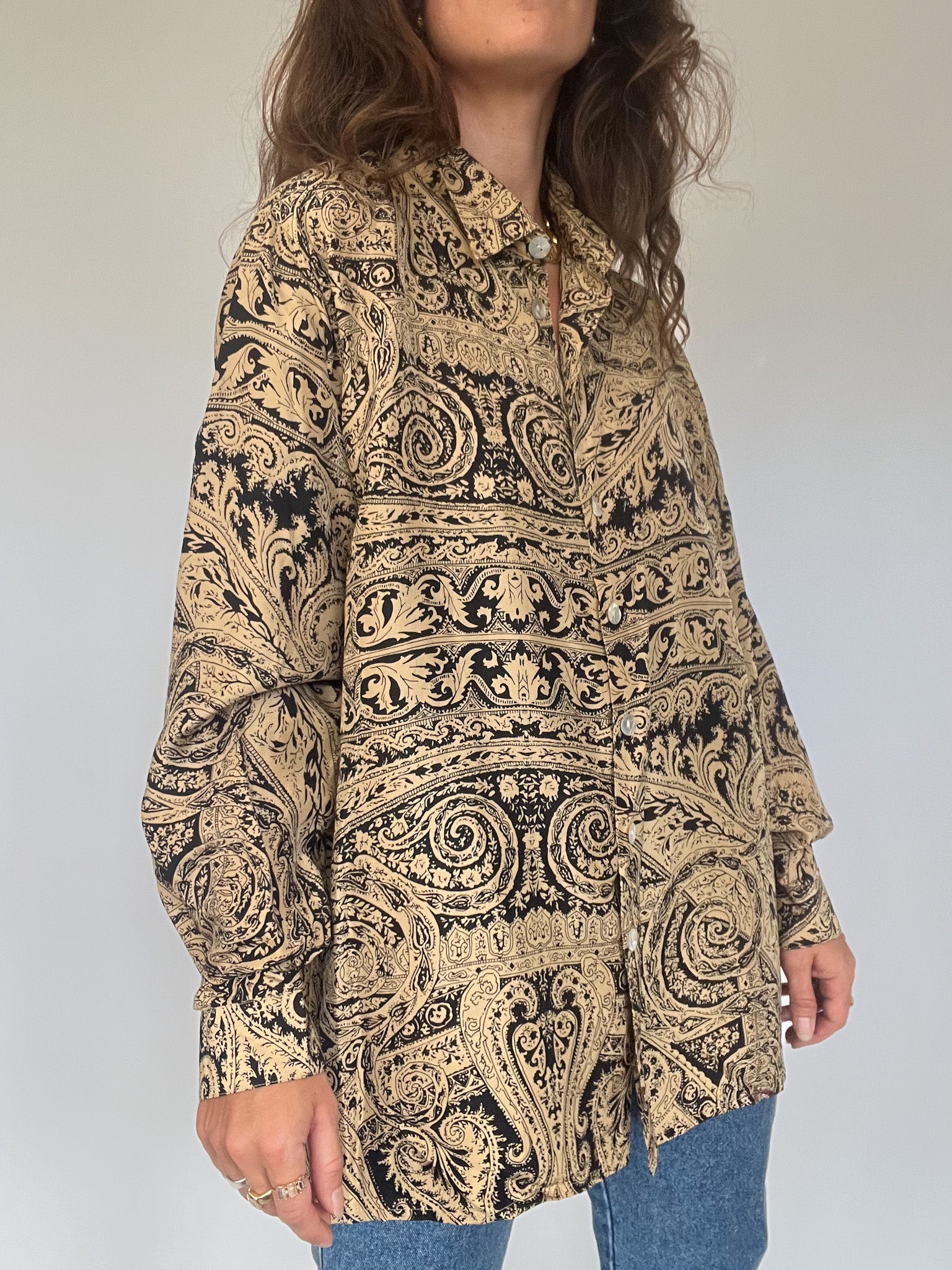 Vintage 90’s Black&Gold Paisley Silk Shirt