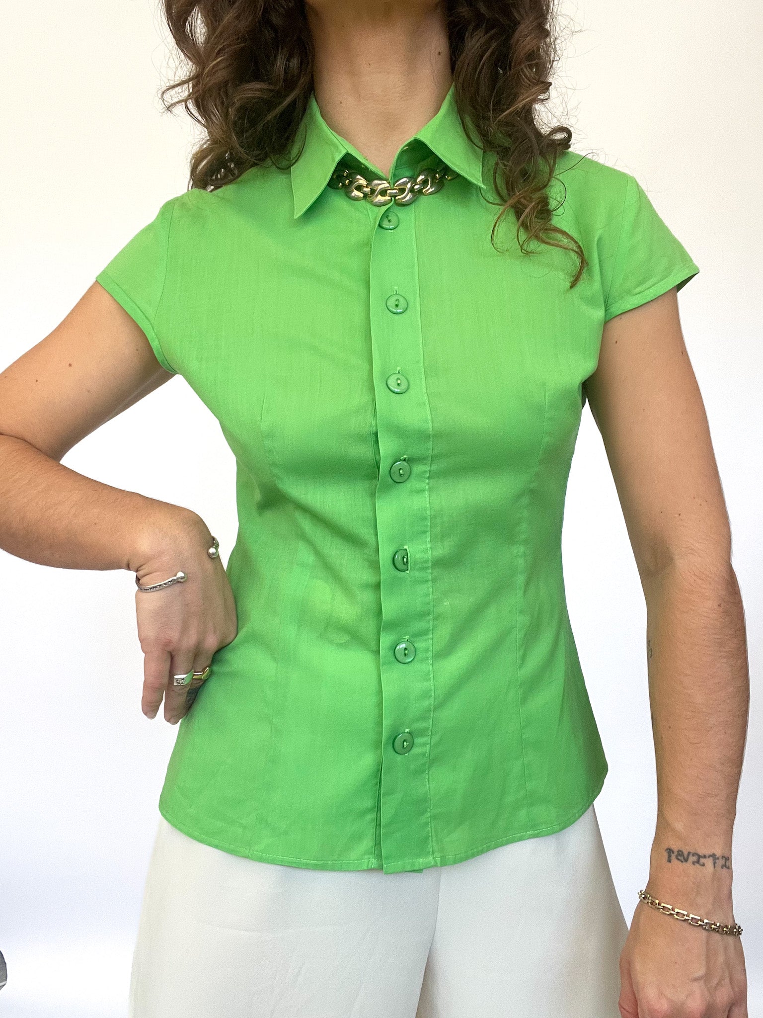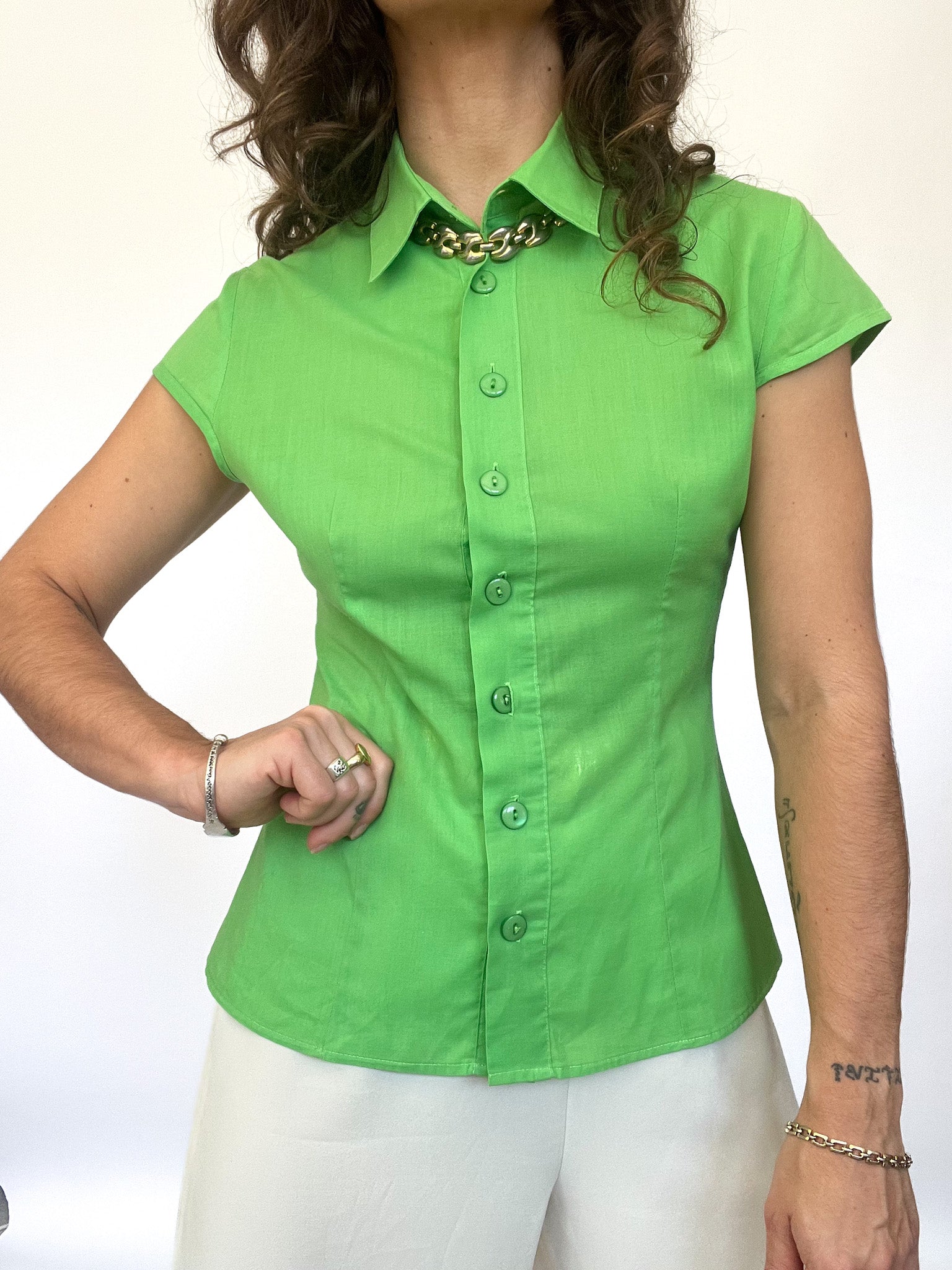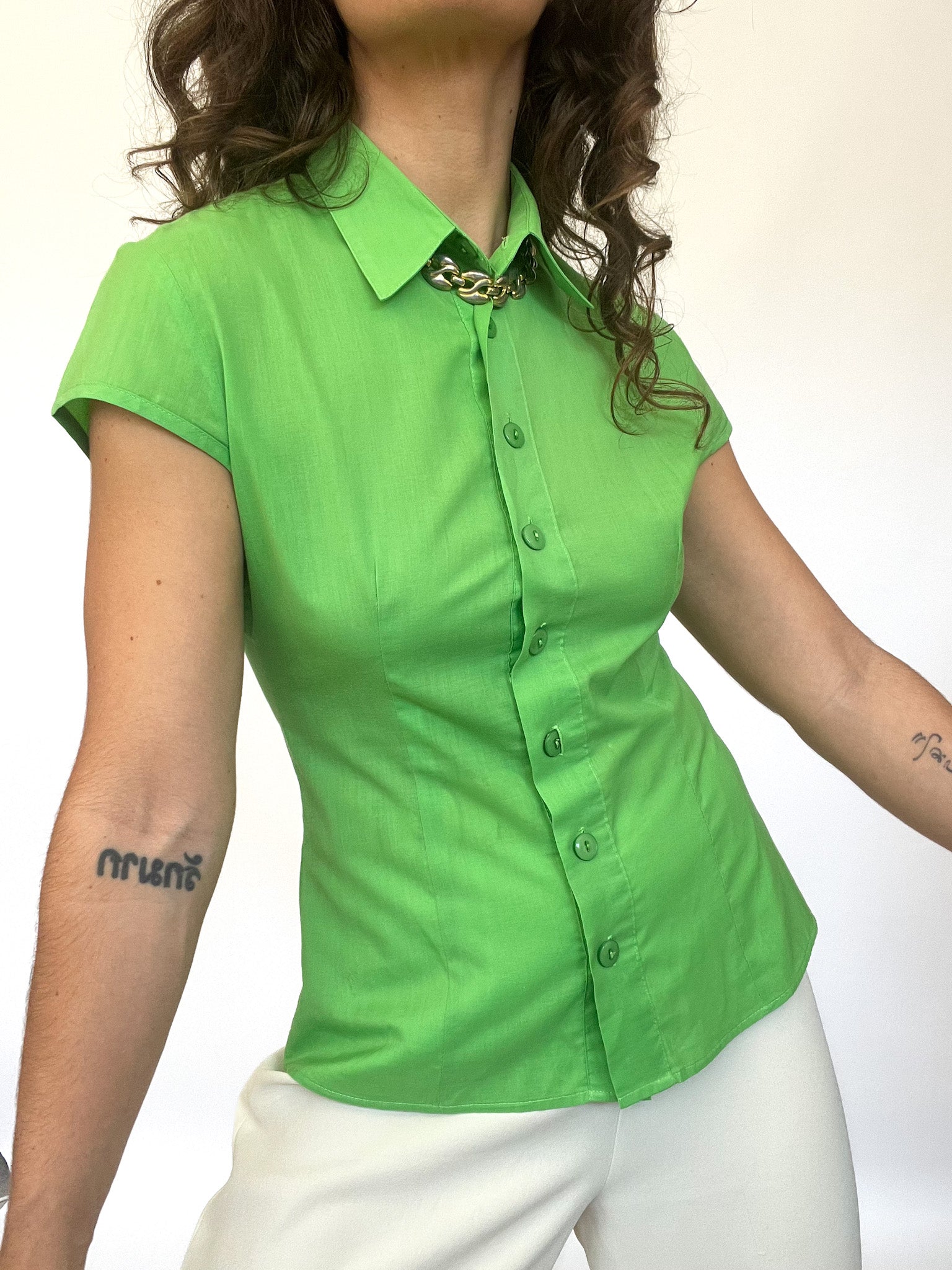 Vintage 90’s Bright Green Fitted Cotton Shirt