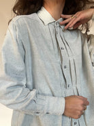 A refined essential from Marc O’Polo, this vintage light grey shirt blends minimalist design with subtle sophistication. Its soft textured fabric and structured front pleats create an elegant yet relaxed silhouette — perfect for those who value effortless chic and timeless quality. A piece that embodies the Skorpiones Vintage ethos: confidence through simplicity and understated luxury.