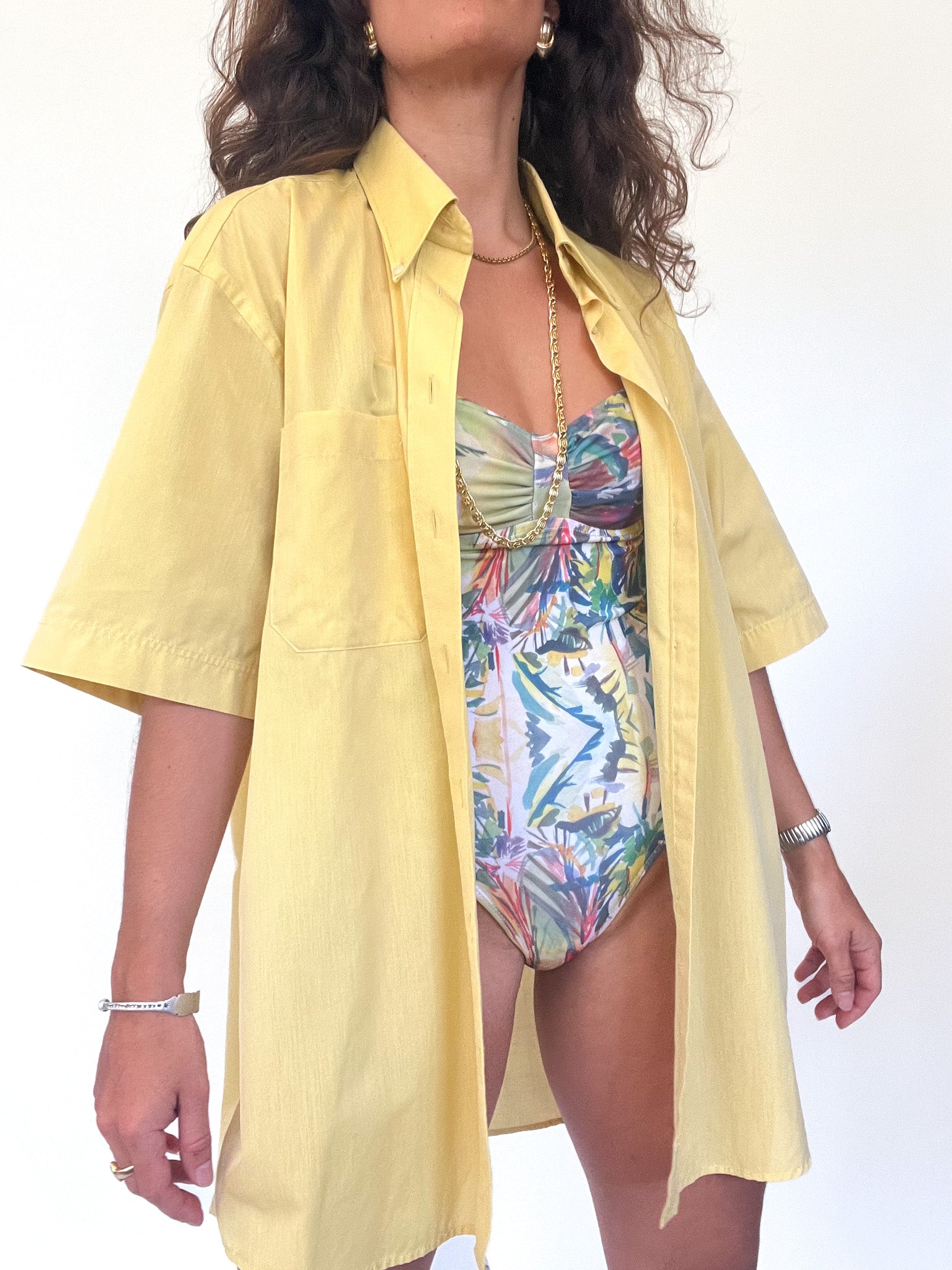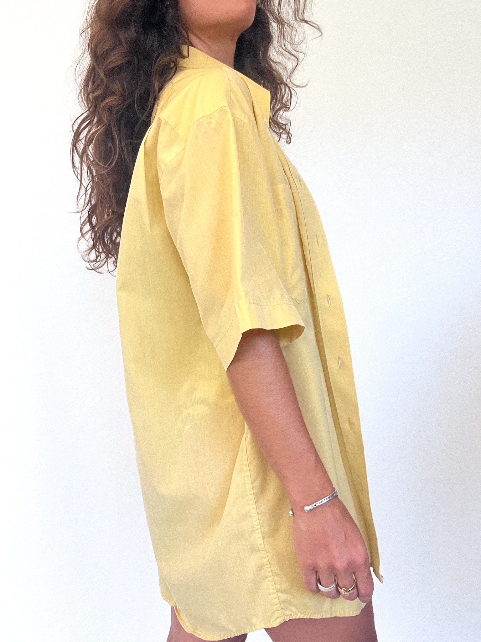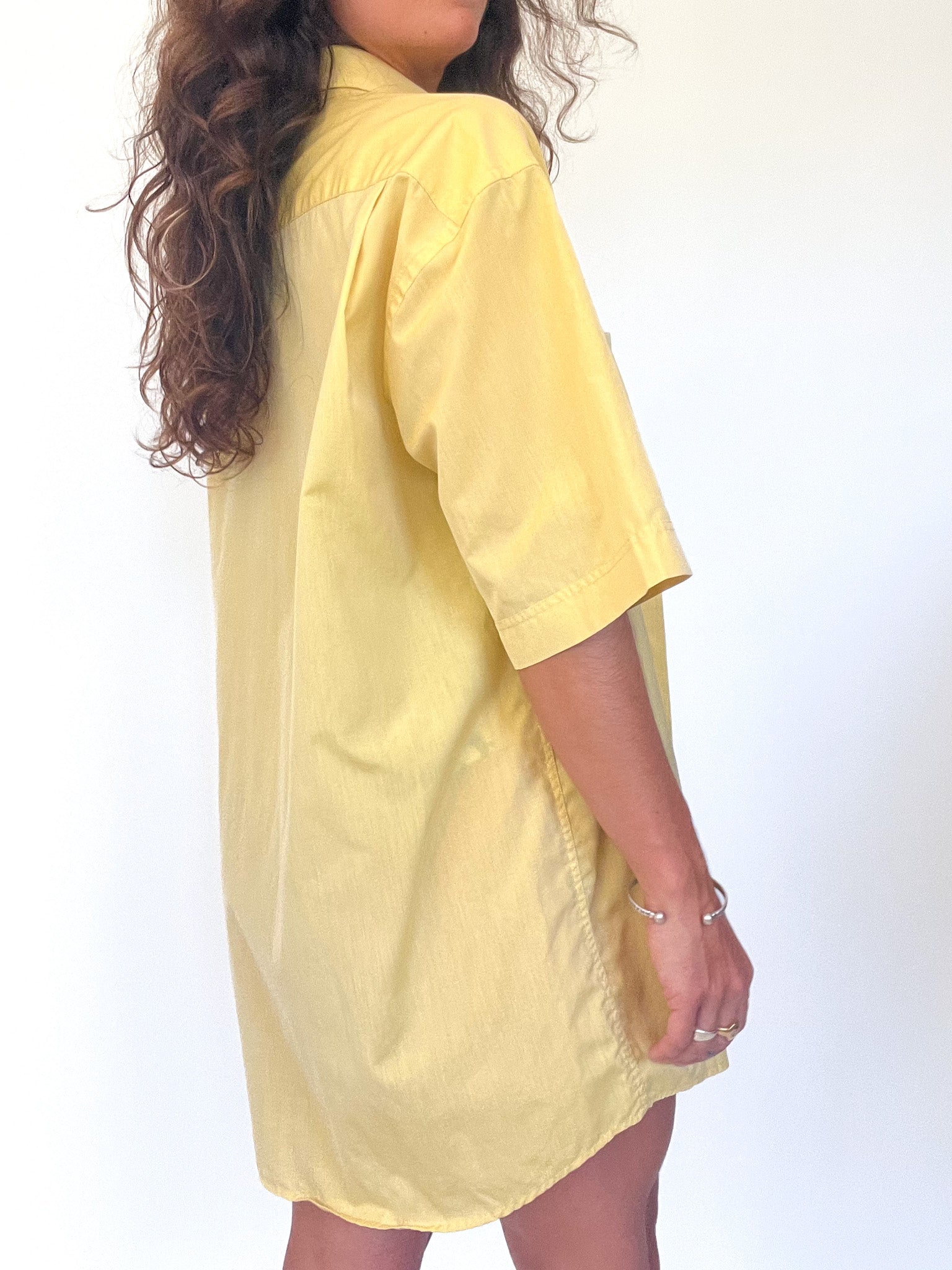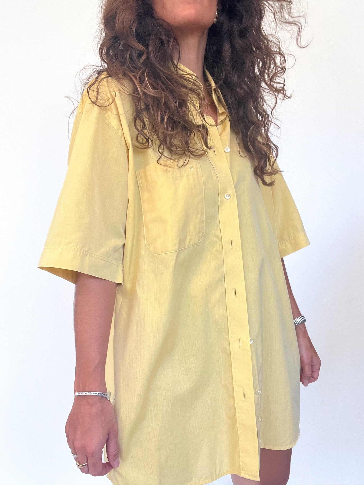 - Special features: Pale yellow tone, classic cut, chest pocket, short sleeves, longline silhouette