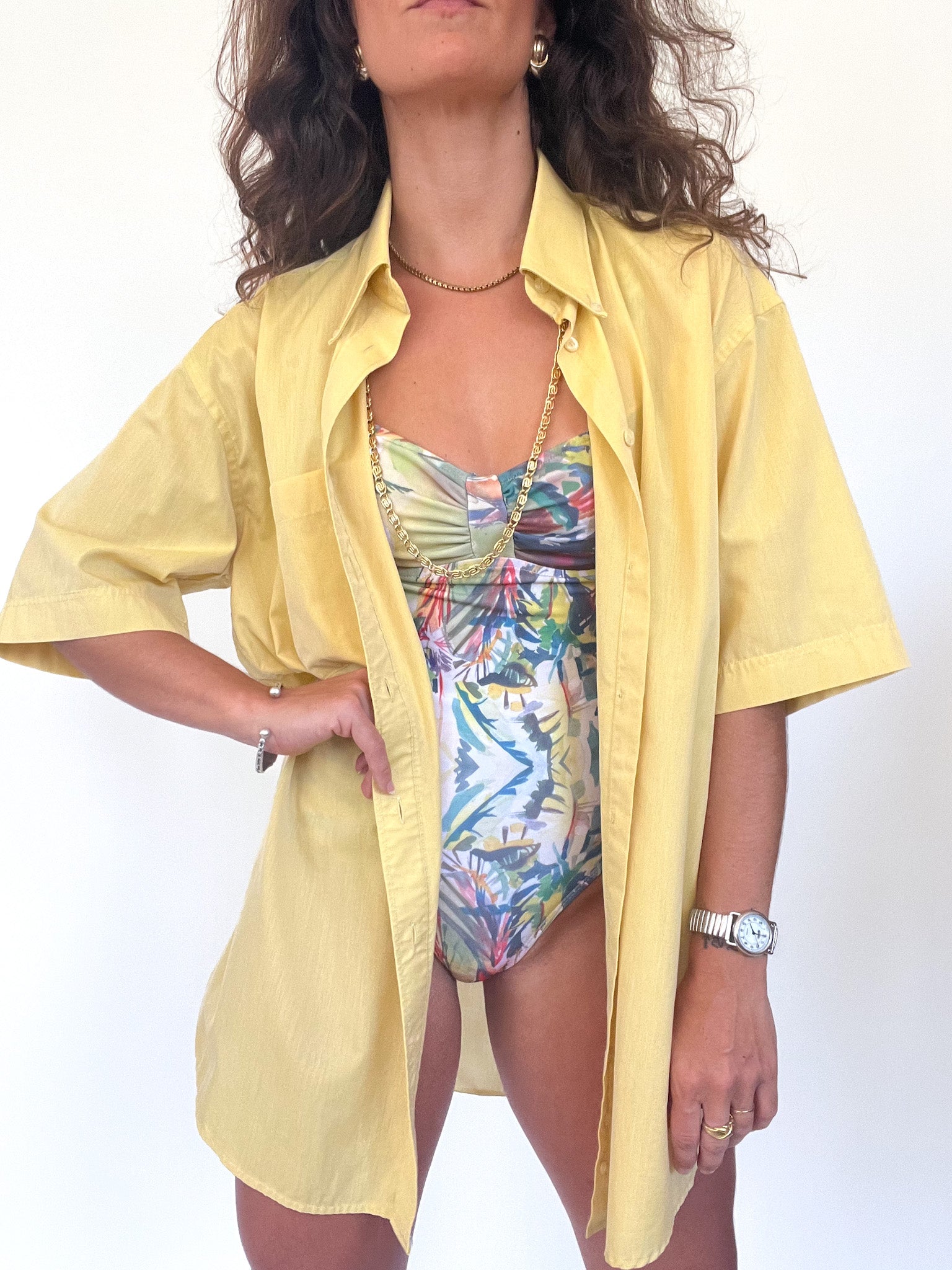 Clean, soft, and subtly subversive, this pale yellow shirt borrows from menswear to reclaim it with style. Its longline cut and light cotton make it perfect to wear oversized, layered, or reimagined. Picked for its quiet confidence, it carries the Skorpiones philosophy: when you wear something rare and well-cut, you don’t need much else to stand out.