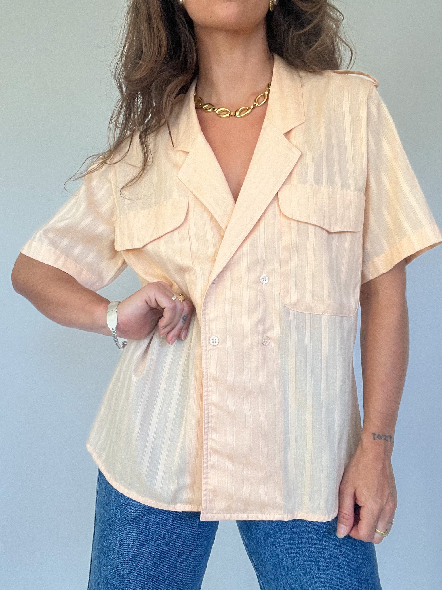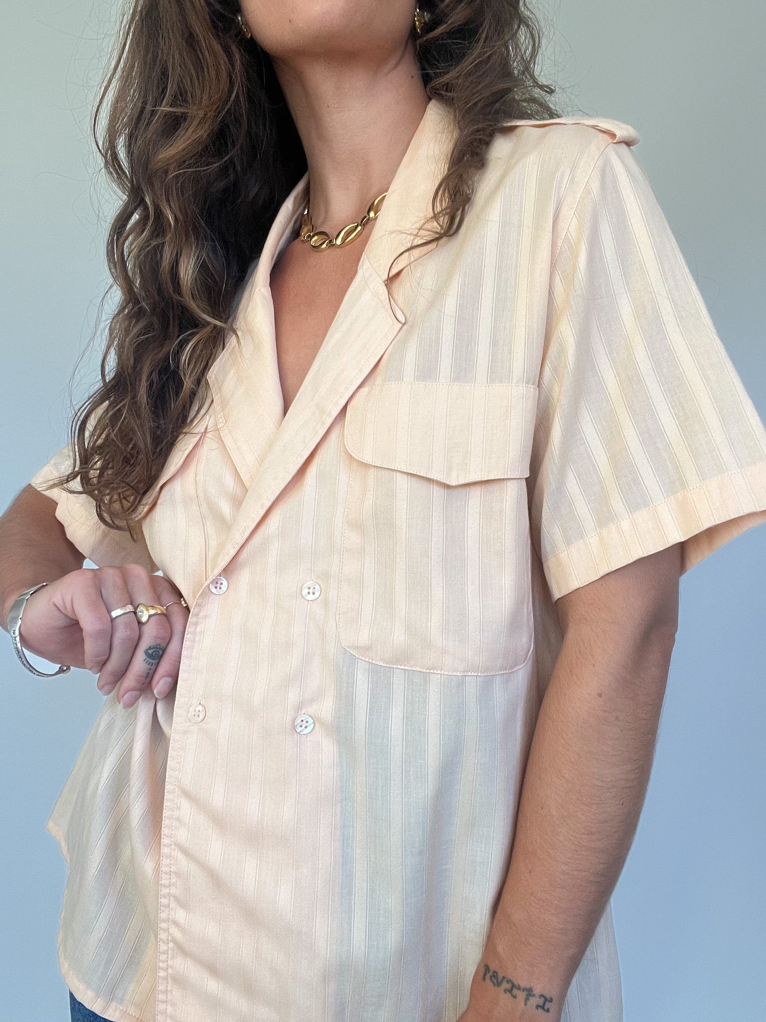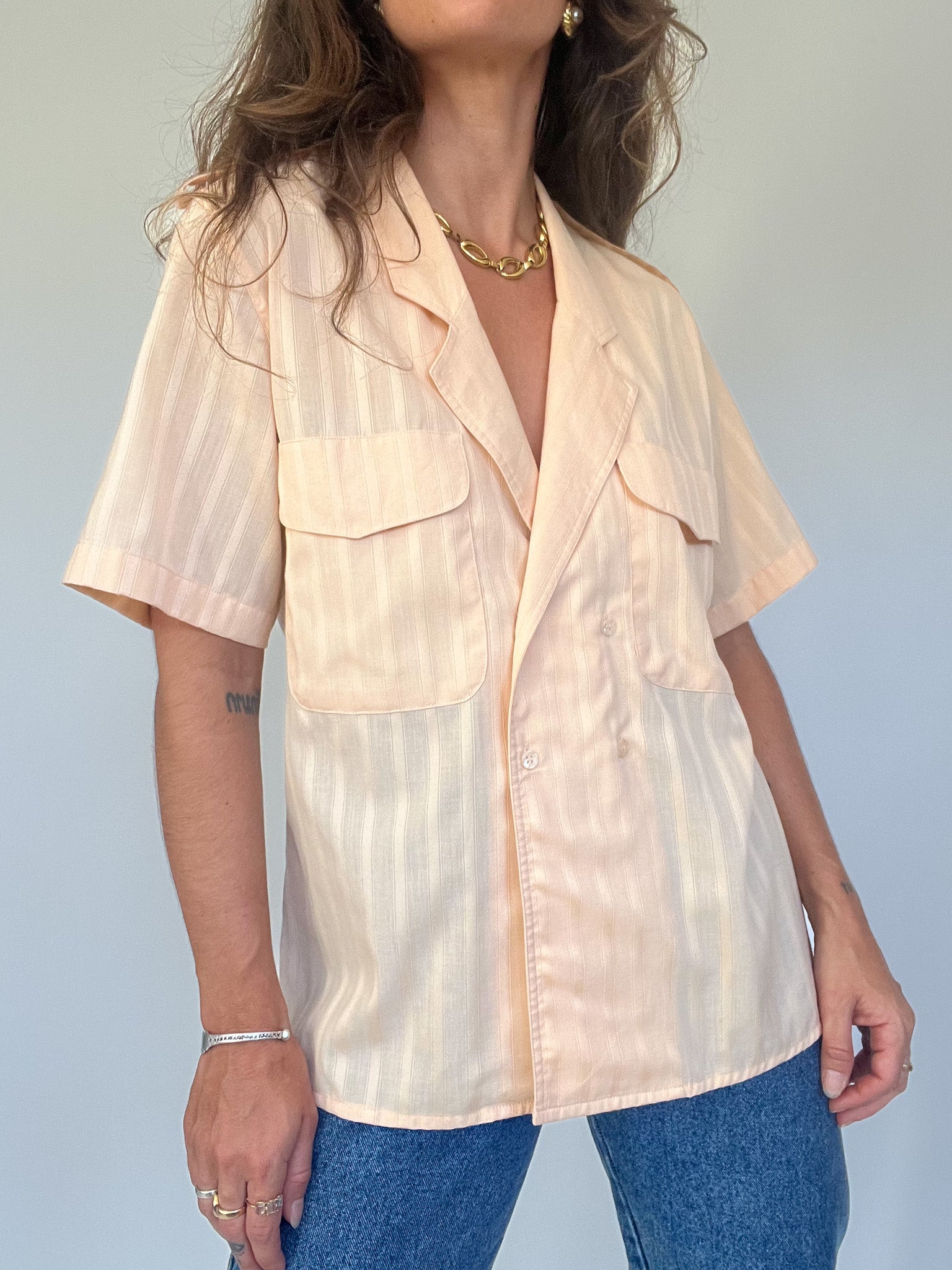 Vintage 90’s Peach Striped Double-Breasted Blouse