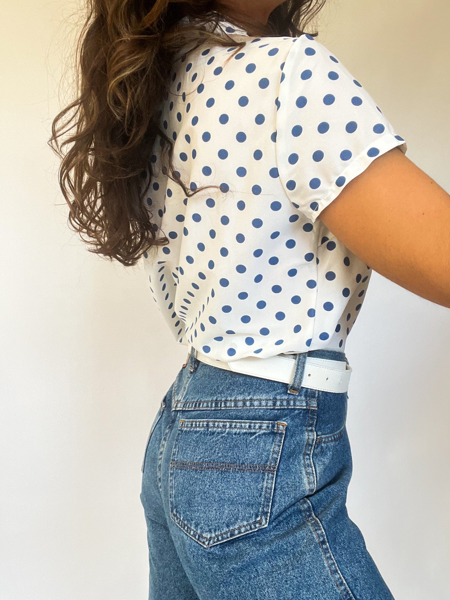 Vintage Blue Polka Dot Blouse